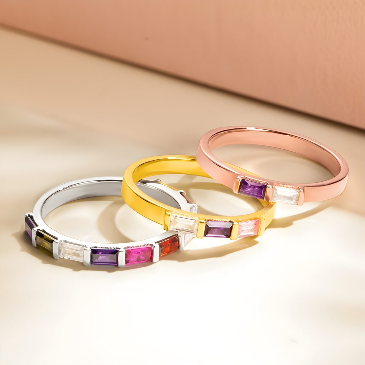 This multi-stone birthstone ring is more than just jewelry—it is a heartfelt tribute to the people who fill your life with love. Its delicate rectangular stones create a colorful story that you can carry with you always, blending elegance with personal meaning. Crafted the Eolante Way.