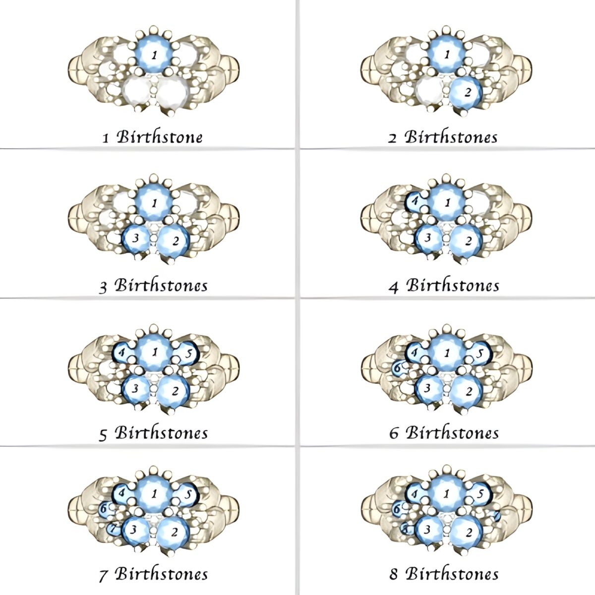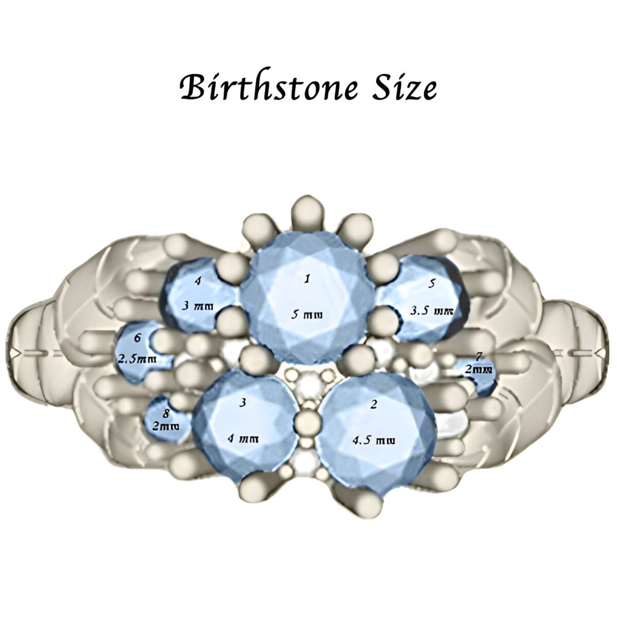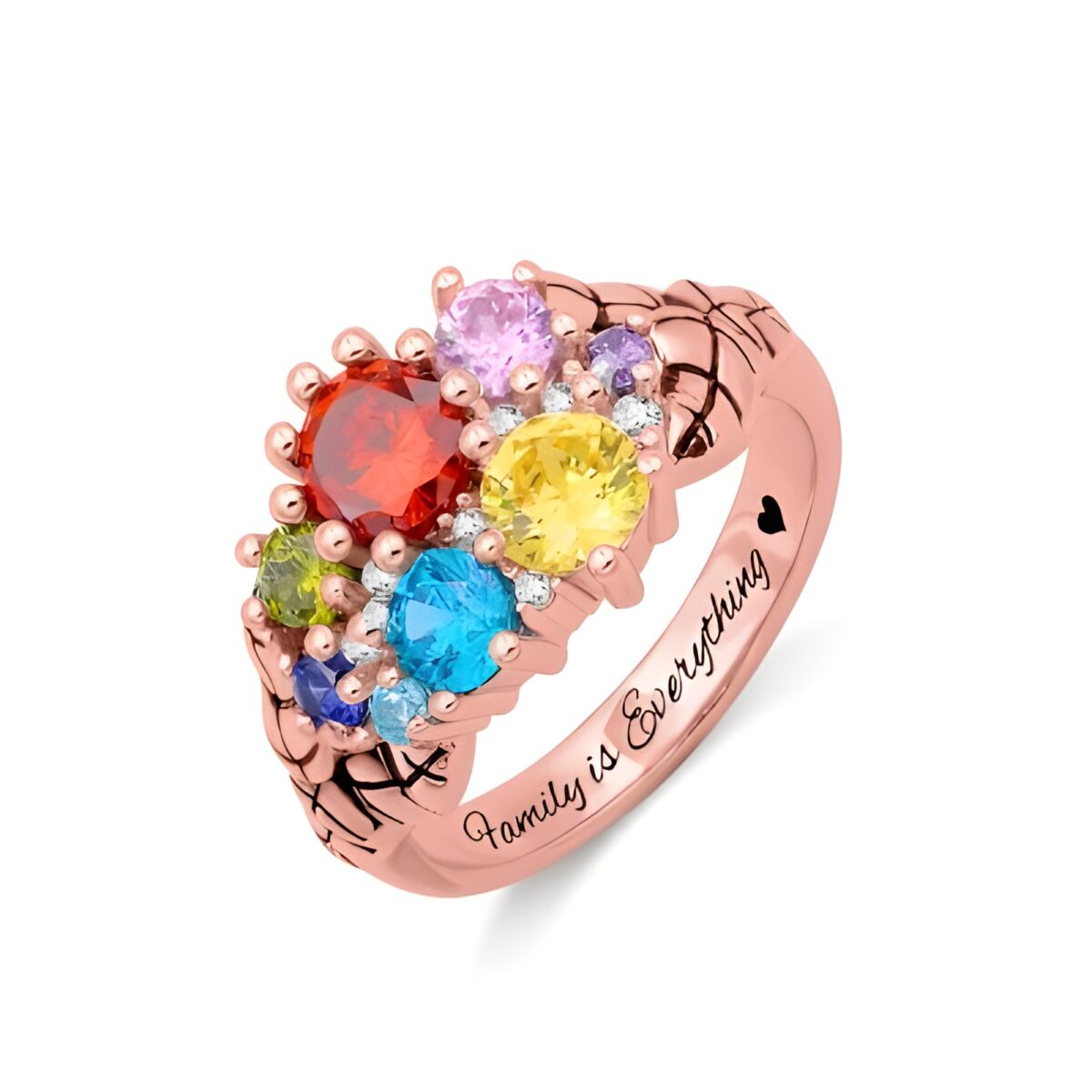 This exquisite birthstone ring is a tender tribute to the love and joy a mother nurtures within her family. Designed as a vibrant garden of colorful gems, it symbolizes the happiness and unity that blossoms through each family member’s unique presence.