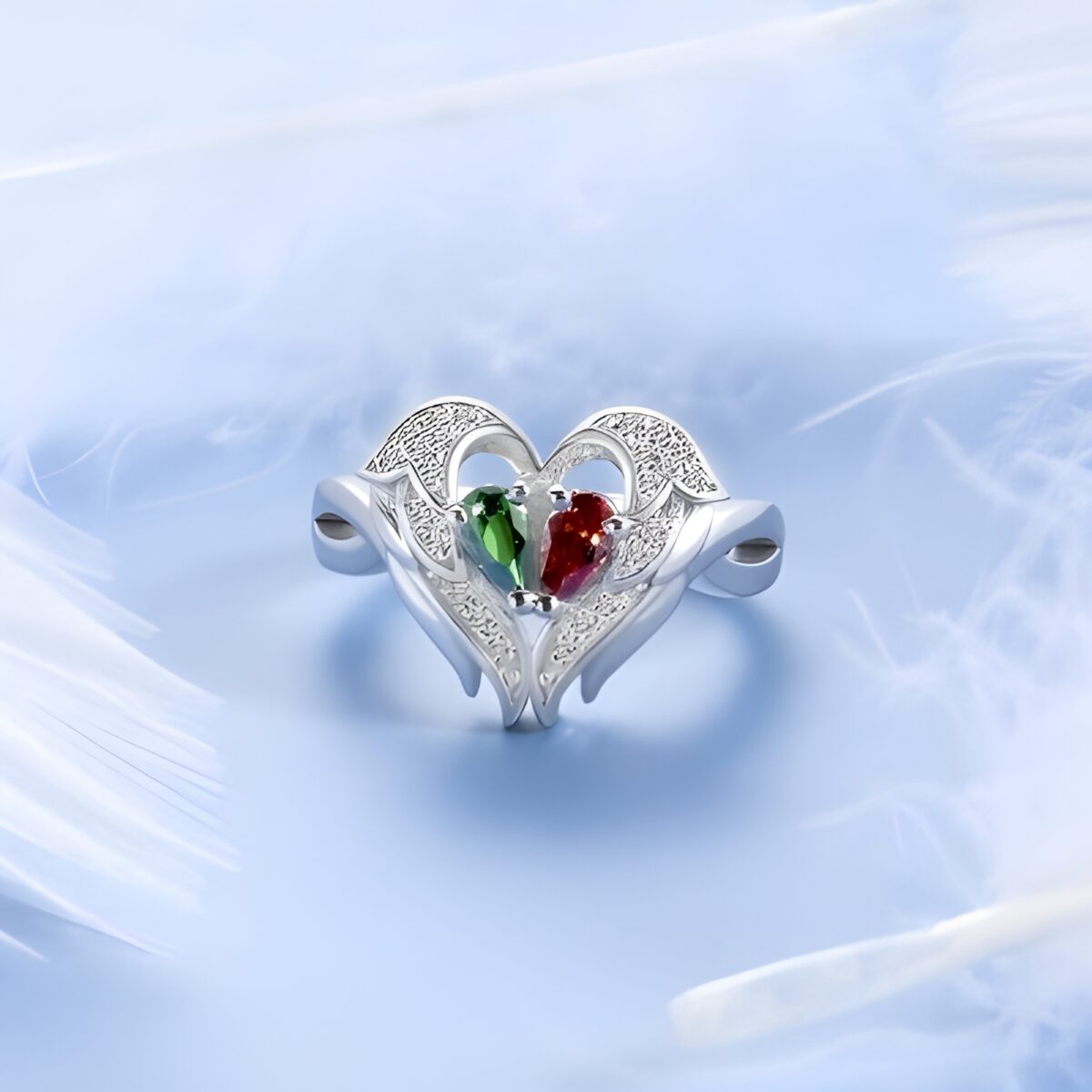 Embrace Eternal Love – Angel Wings Birthstone Ring – A Cherished Token for Your Beloved