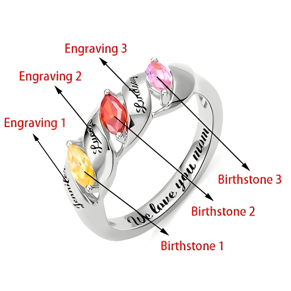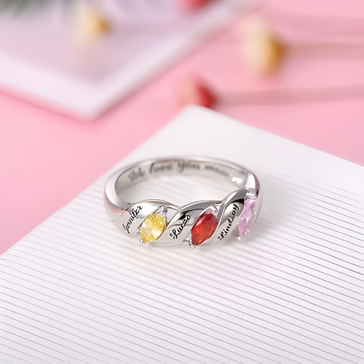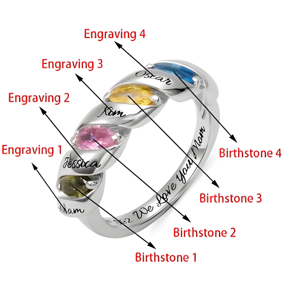 Twined Bonds of Love – Engraved Silver Ring with Birthstones – Celebrate Family Connections