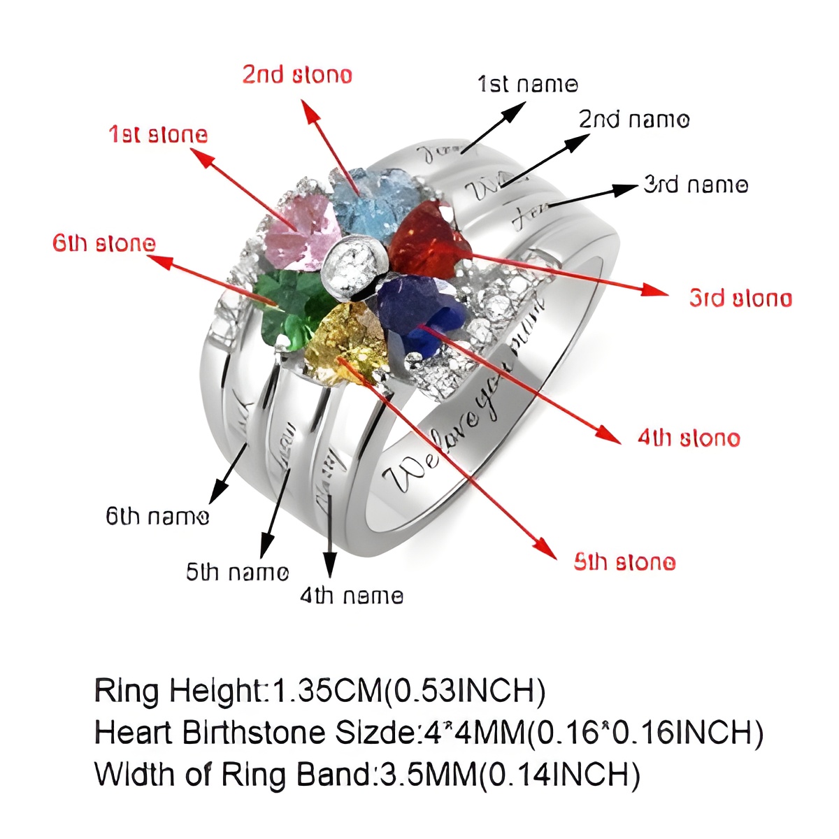 Embrace Eternal Bonds – Heart Birthstone Ring with Custom Engraving – For Cherished Loved Ones