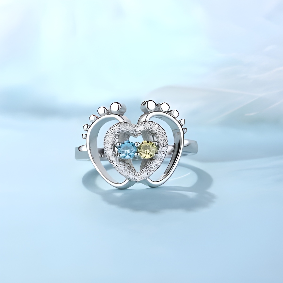 💍 Capture the miracle of new life with this heart and footsteps birthstone ring, a meaningful keepsake for moms celebrating their babies.