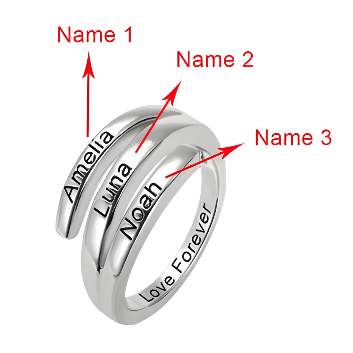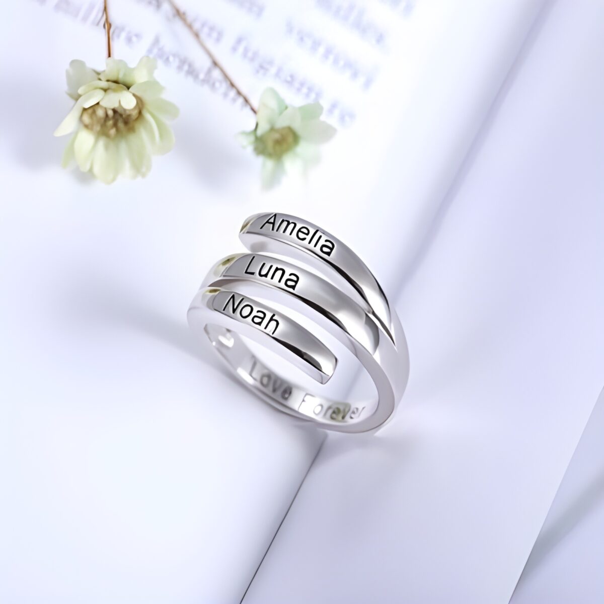 🕊️ Carry your loved ones with you through every moment with this custom sunbird silver ring, engraved with three names for a personal touch.