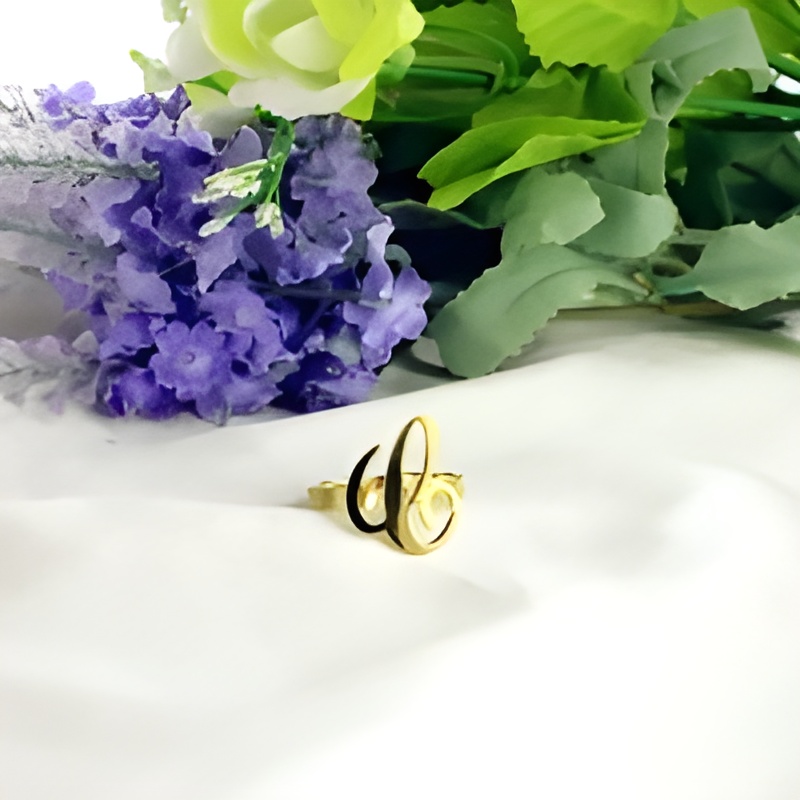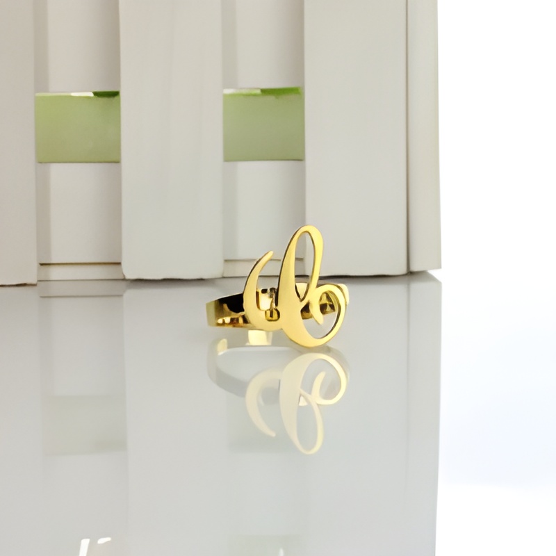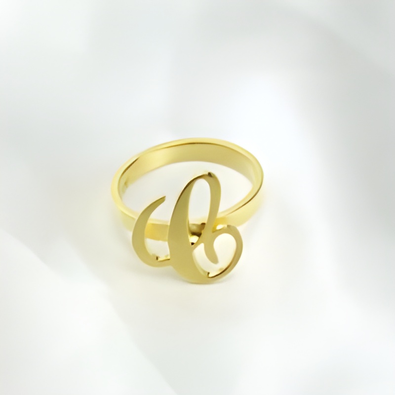 This exquisite initial letter ring is a delicate celebration of your individuality. Crafted with care, it carries a single letter that speaks your name or a cherished connection, making it a meaningful piece to wear or share with someone special.