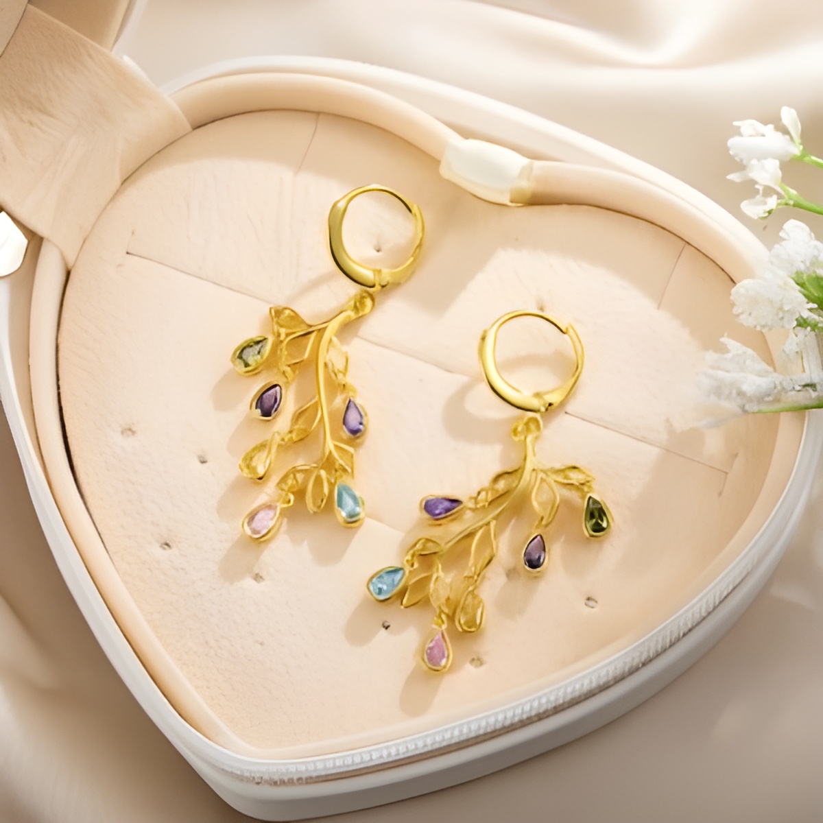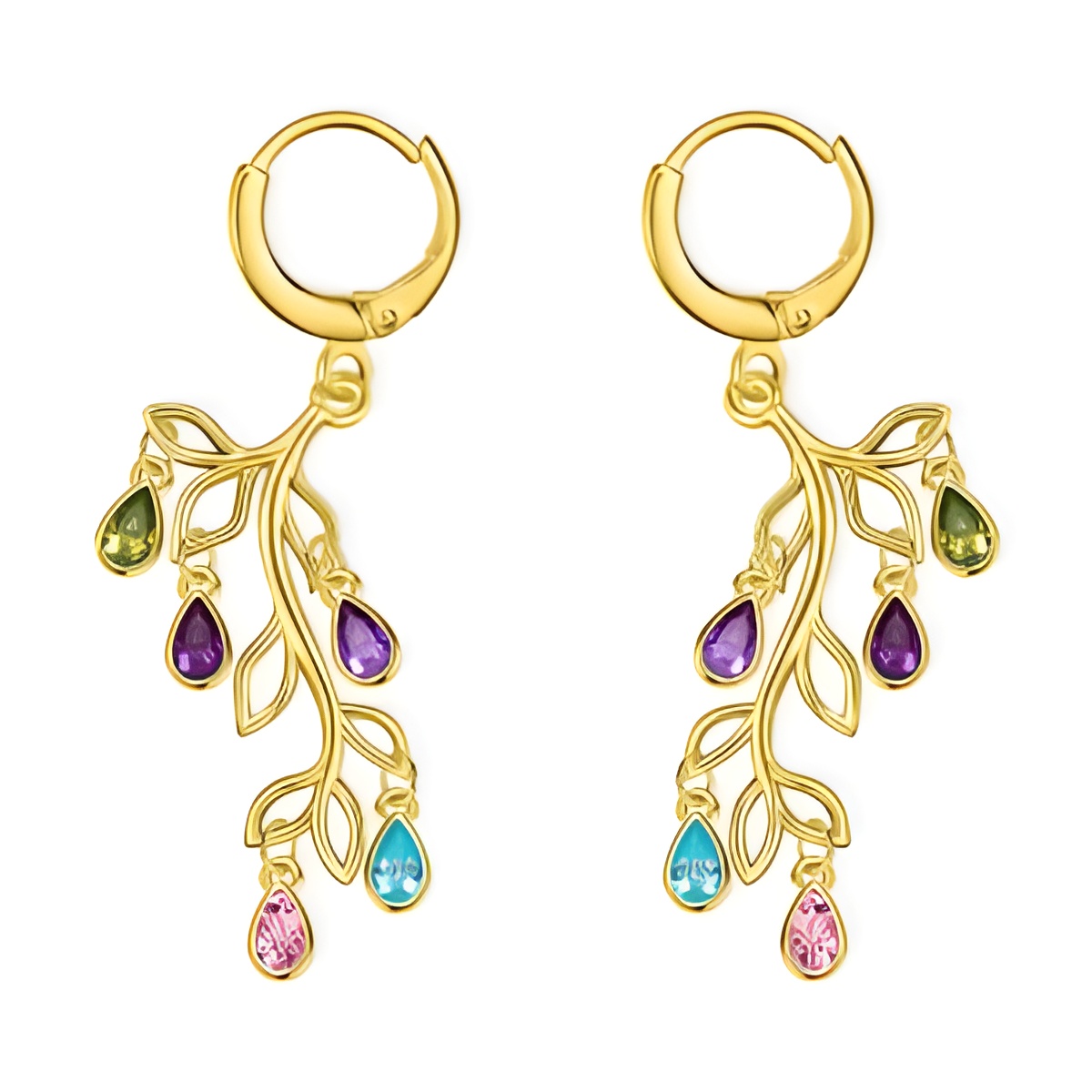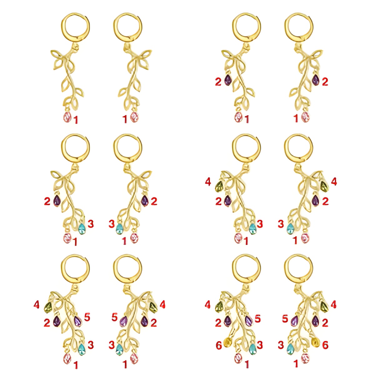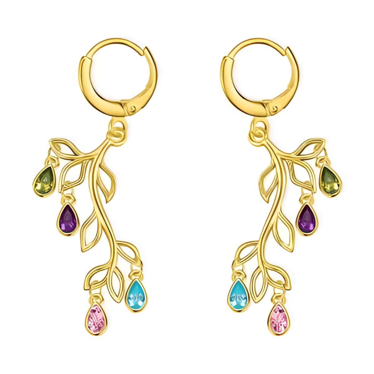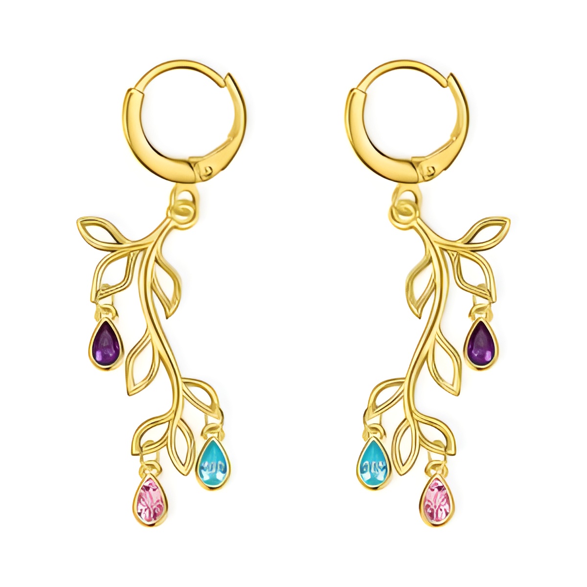 These exquisite birthstone earrings are a heartfelt tribute to the unique connection shared among family members. Designed with delicate branches and leaf-shaped stones, they symbolize the growth and unity of your loved ones, making each pair a meaningful keepsake.