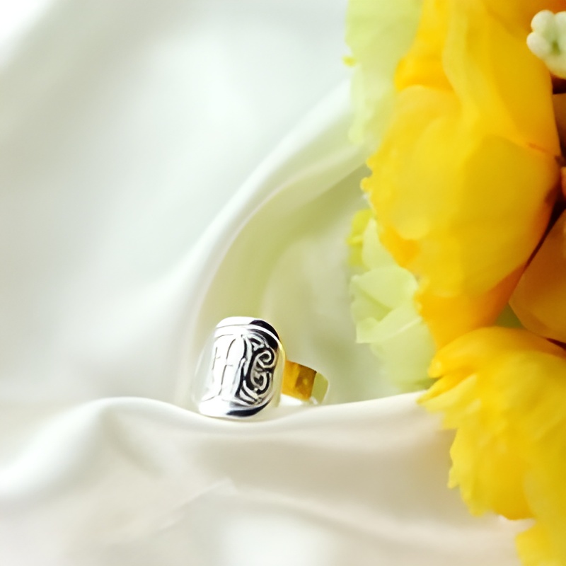 This refined sterling silver monogram ring is crafted for the man who cherishes personal style and meaningful details. Engraved with a fancy script monogram, it carries your unique mark with quiet elegance, making it a cherished keepsake or a thoughtful expression of love for someone special.