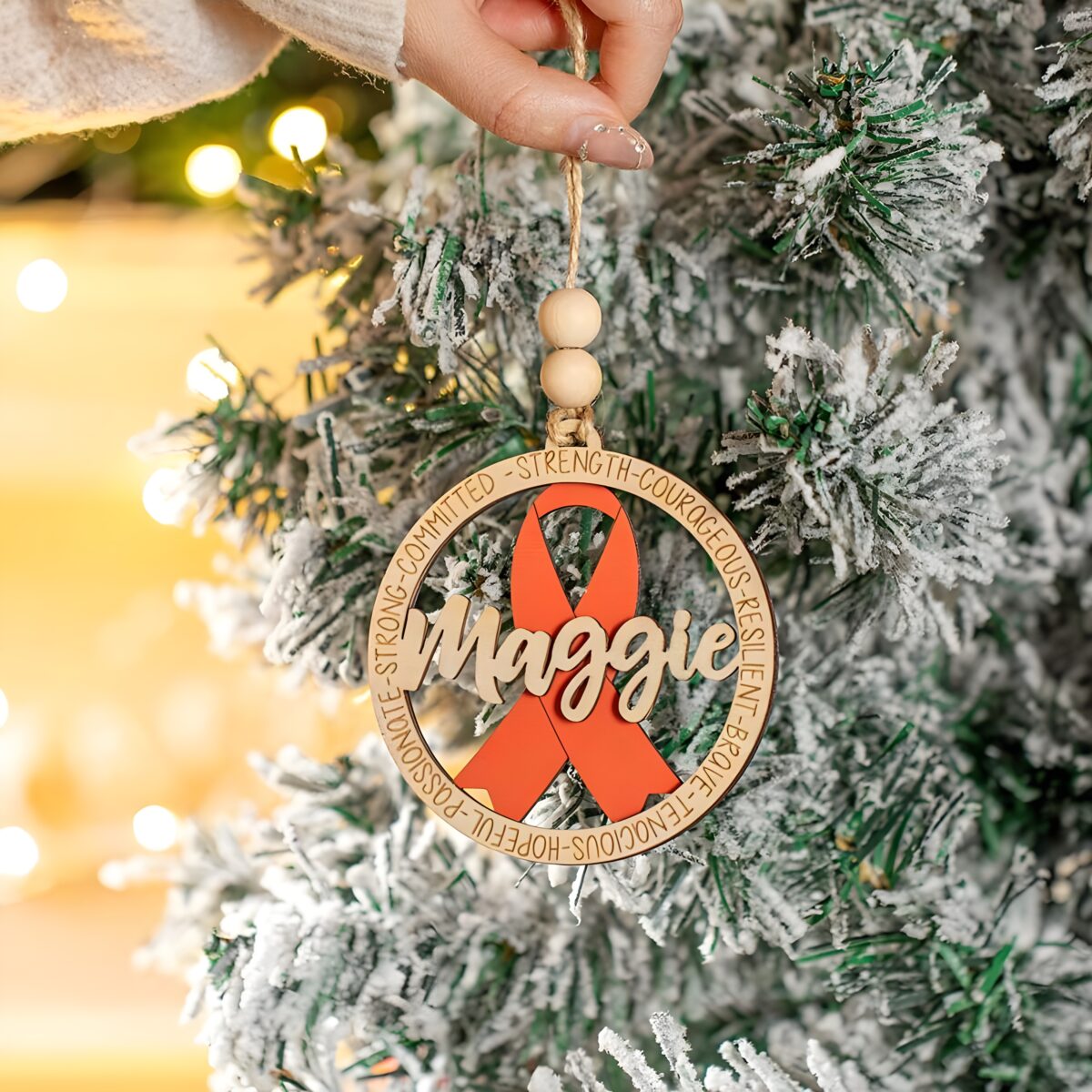 Embrace Hope and Strength – Wooden Cancer Awareness Ornaments – For Cherishing Fighters and Survivors This Holiday Season