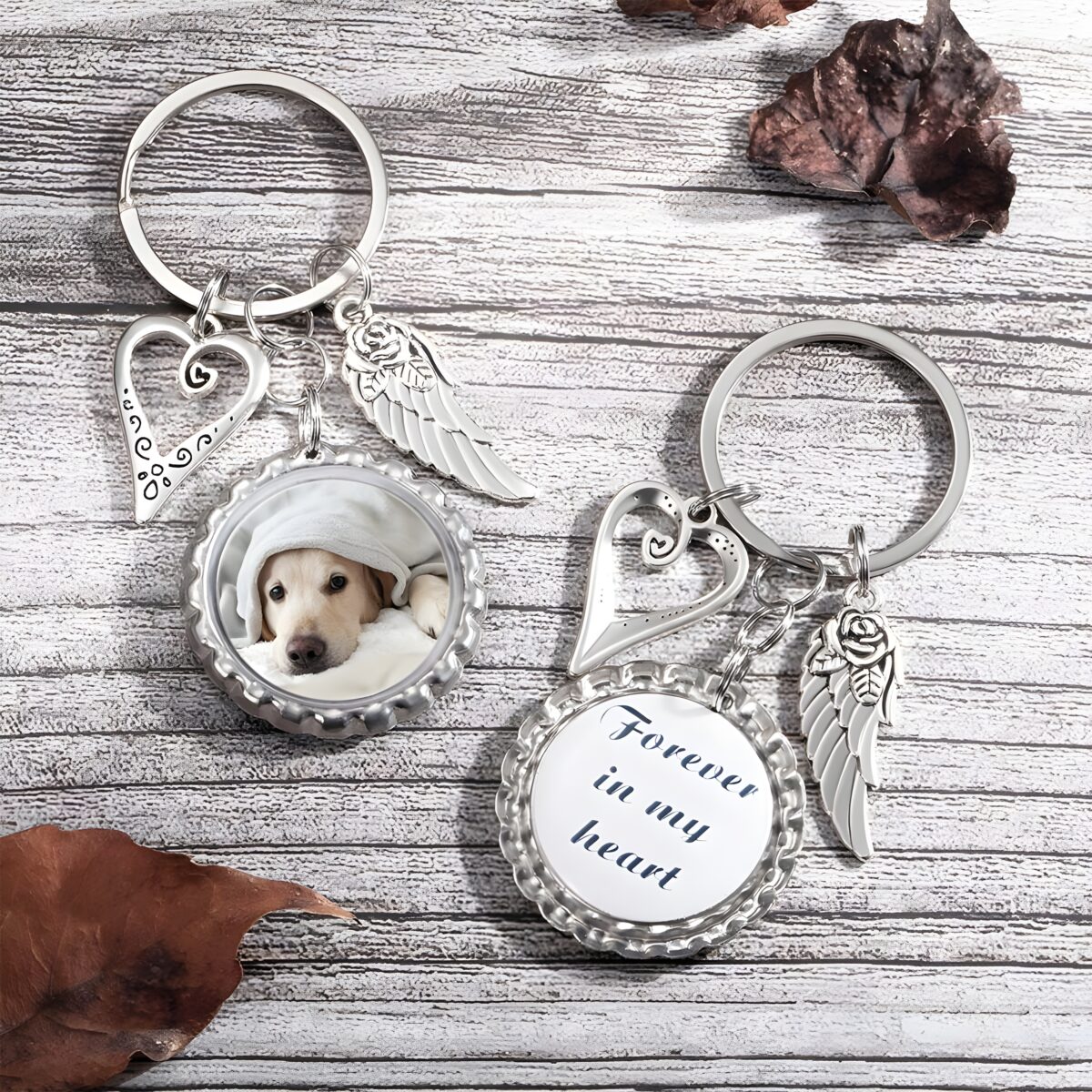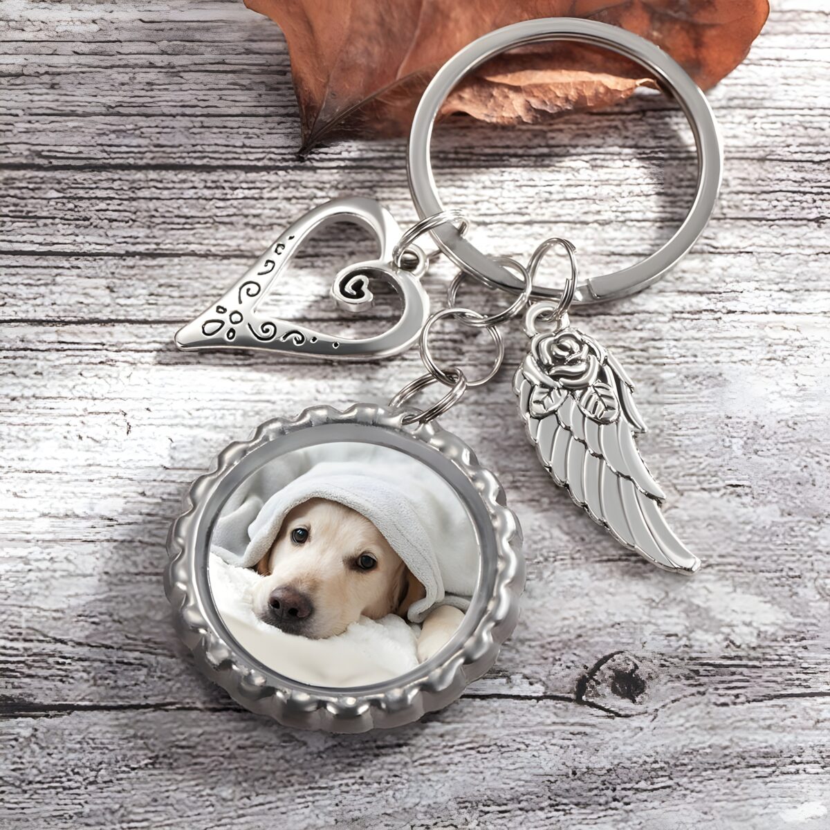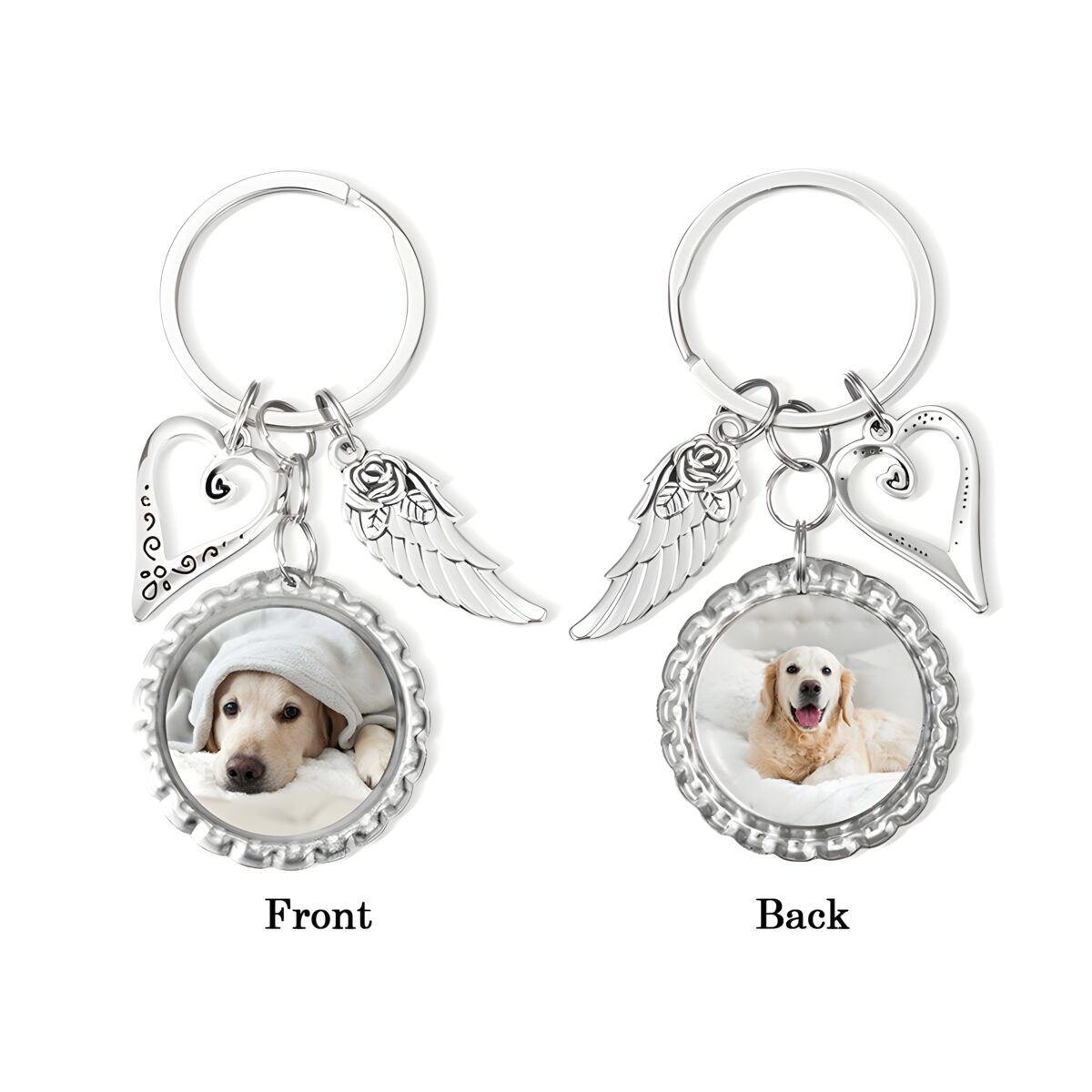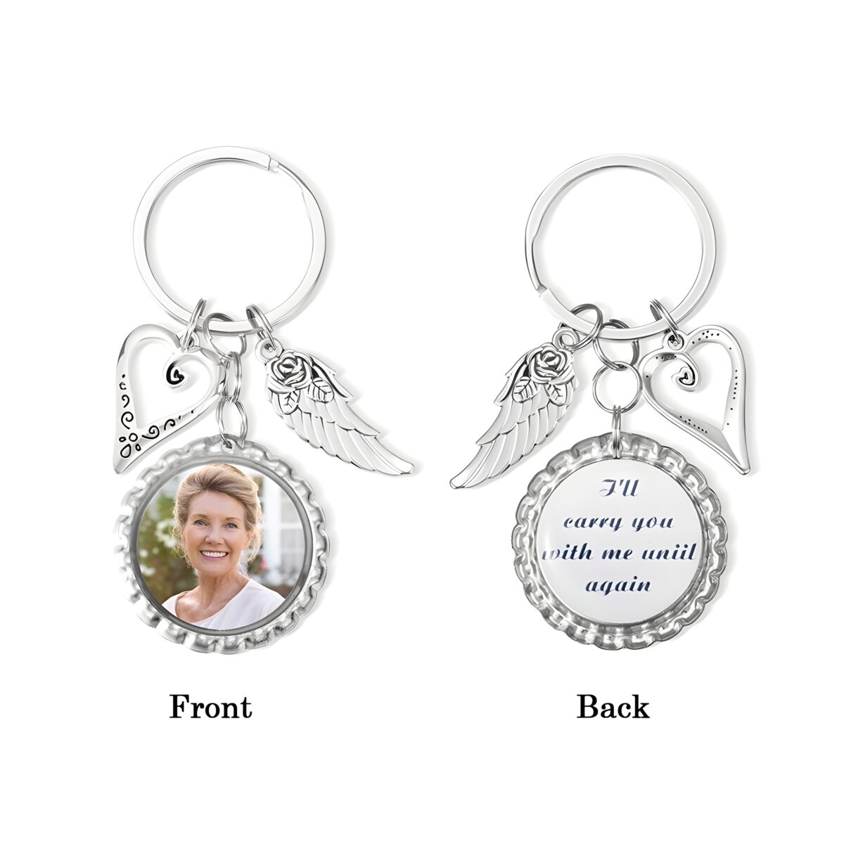 🕊️ Keep your loved ones close with this photo disc keychain with wings and heart charm, a tender symbol of remembrance and love.
