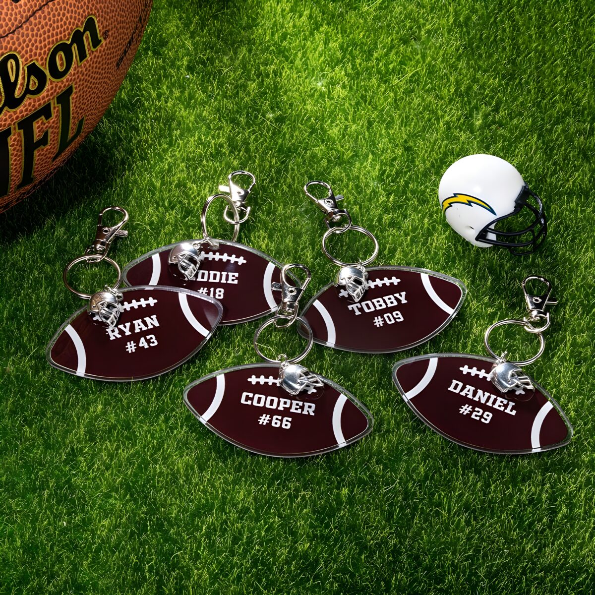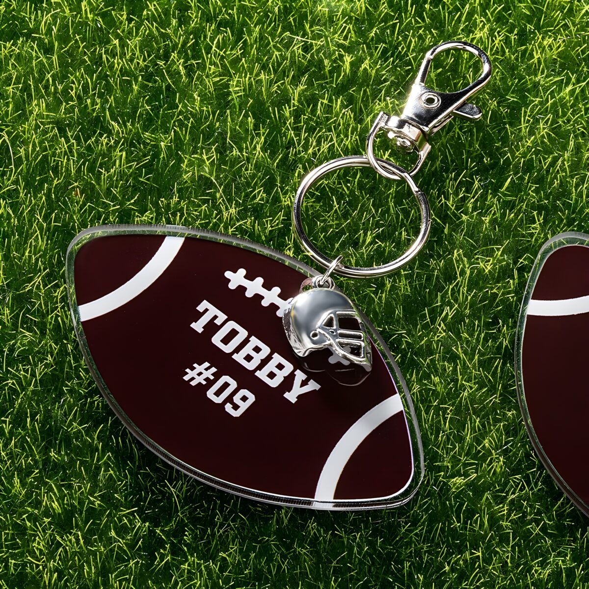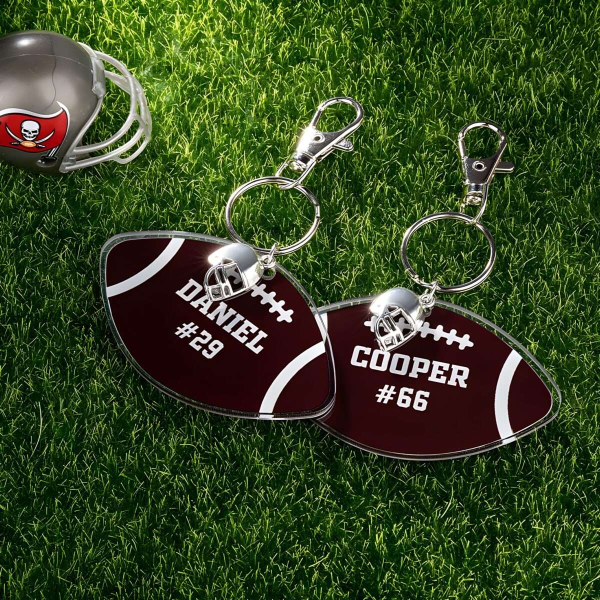 • 💖 Personalized Touch – Customize each keychain with a name and number that tells your unique football story.
