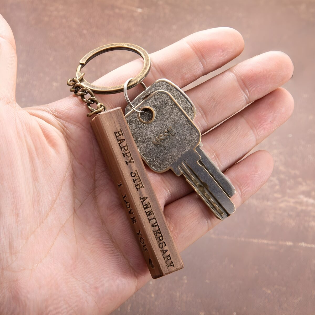 🔑 Carry your story with this engraved wooden bar keychain, a meaningful keepsake for the special men in your life.