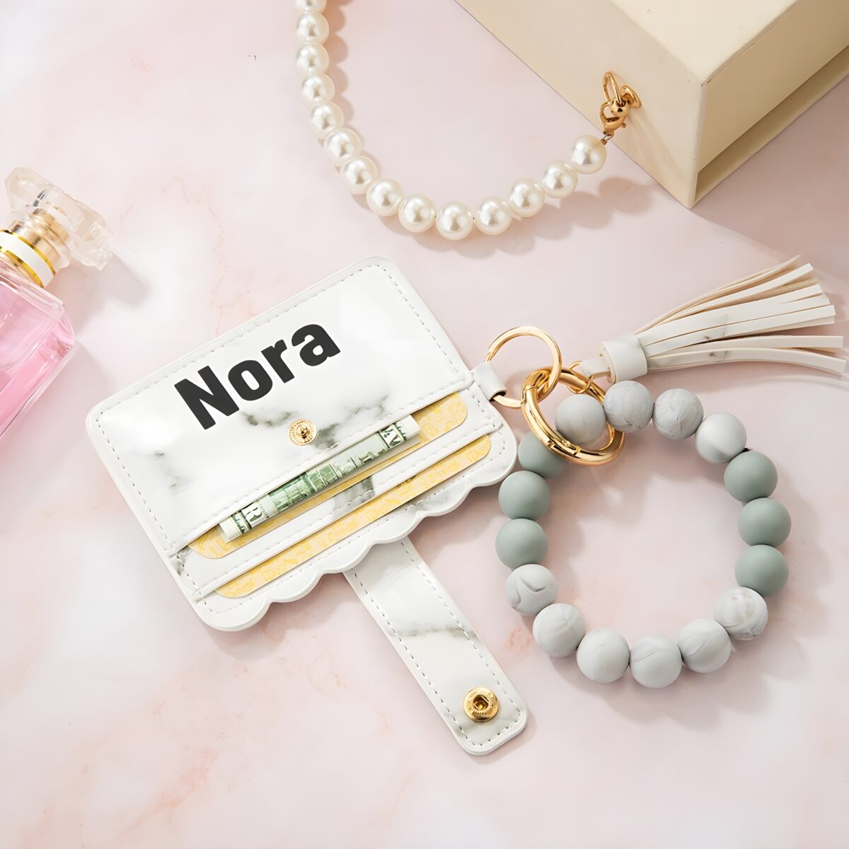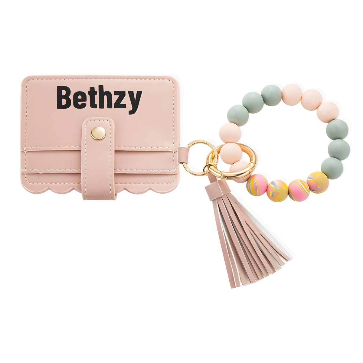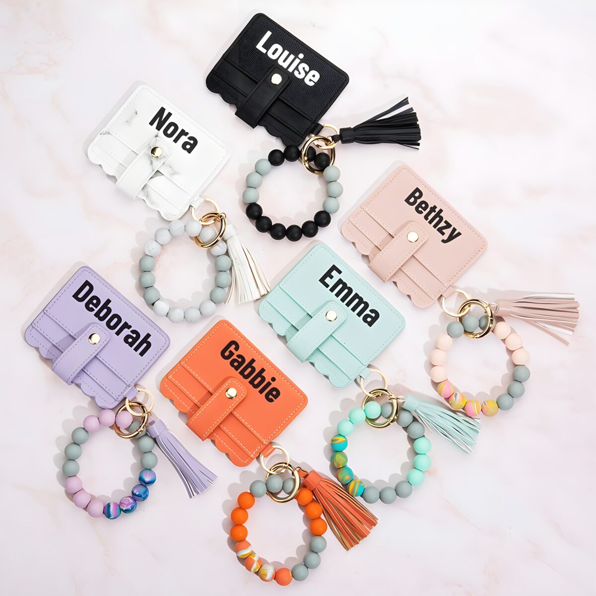🔑 Keep essentials close with this keychain wallet featuring a silicone bead wristlet, blending style and convenience for her everyday.