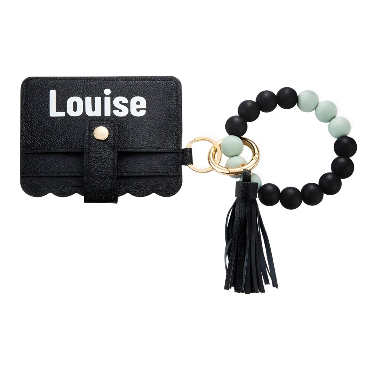 This elegant keychain wallet with a silicone bead bangle is designed for the woman who values both fashion and function. It carries her essentials with ease while adding a touch of charm to her everyday look. Whether she’s heading to work, running errands, or enjoying a night out, this piece keeps her keys and cards close with comfort and style.