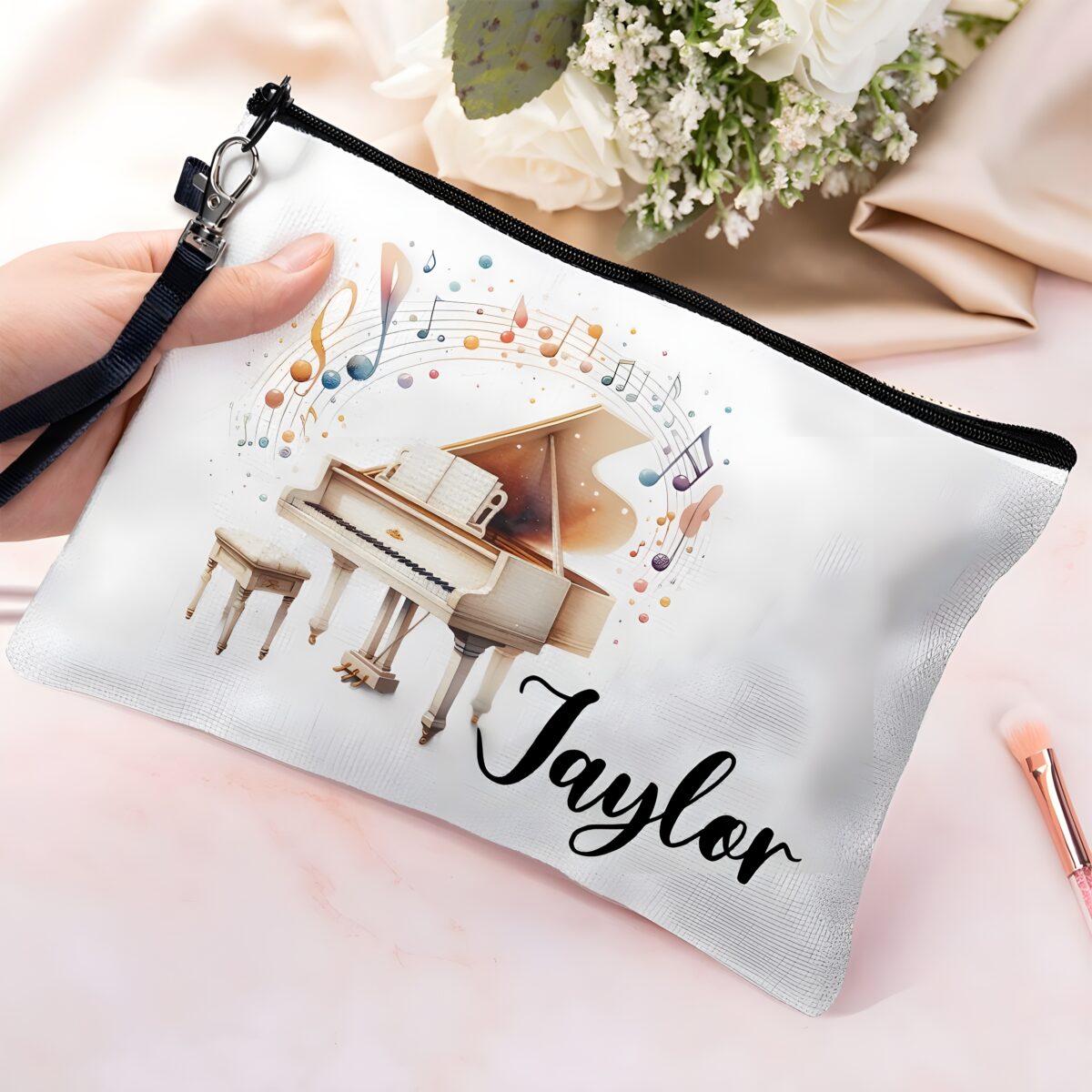 Carry Your Melody – Custom Linen Musician’s Cosmetic Pouch – For the Passionate Performer and Music Lover