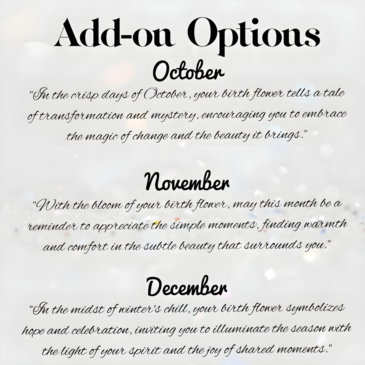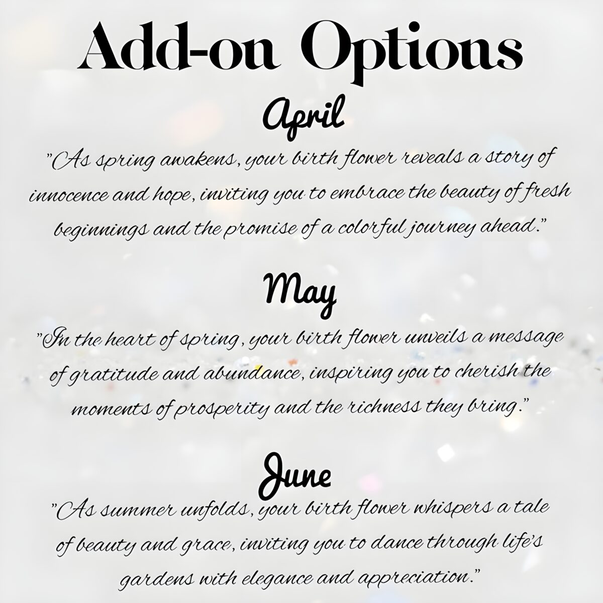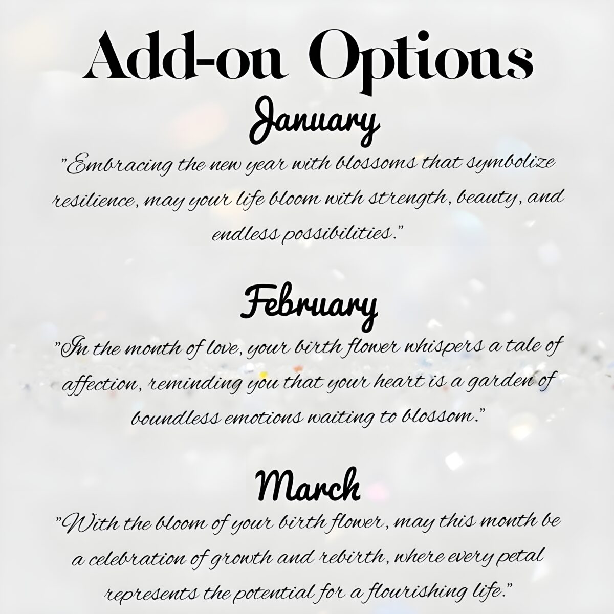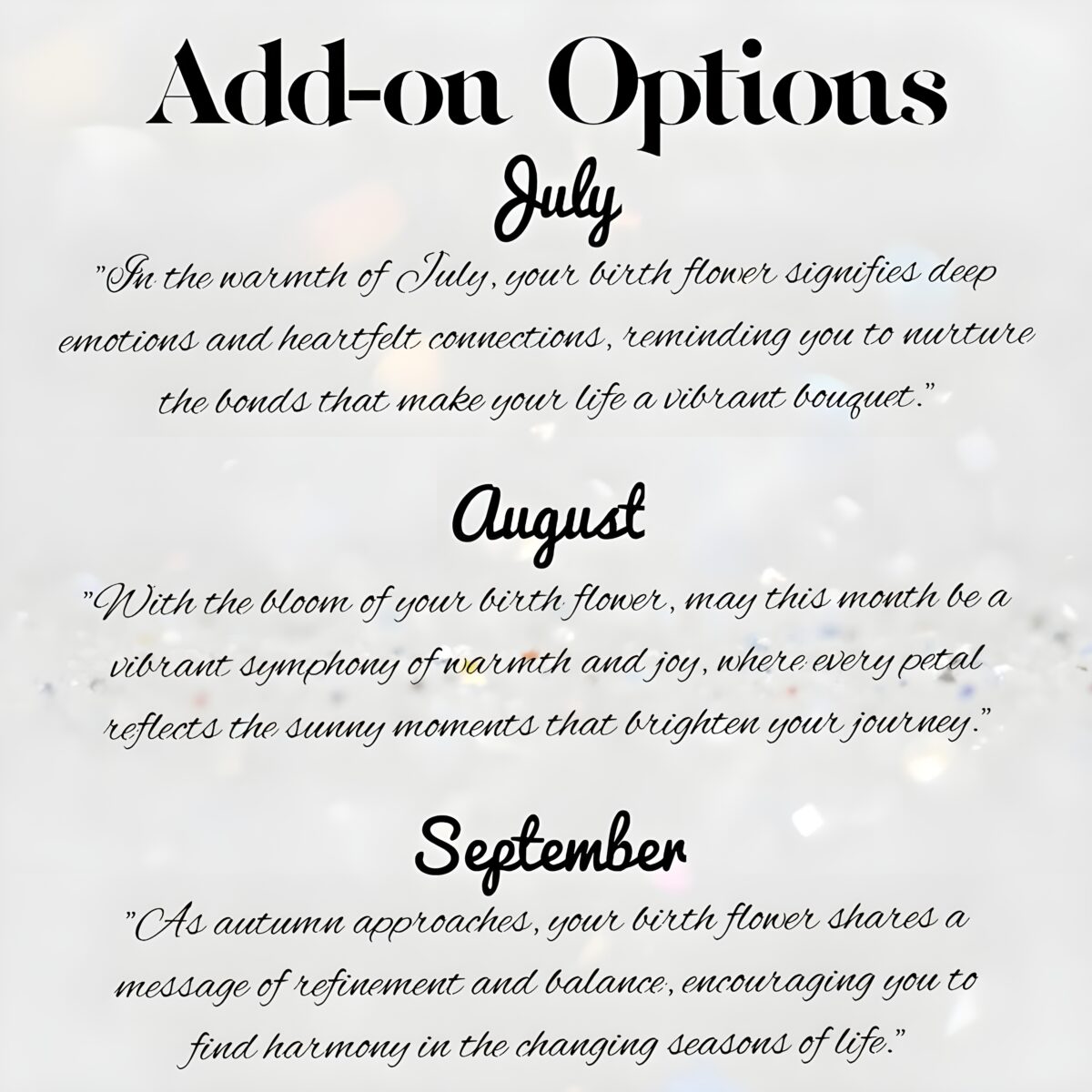 • 💖 Personalized Touch – Customized with a birth flower bouquet and the recipient’s name, making each piece uniquely theirs.