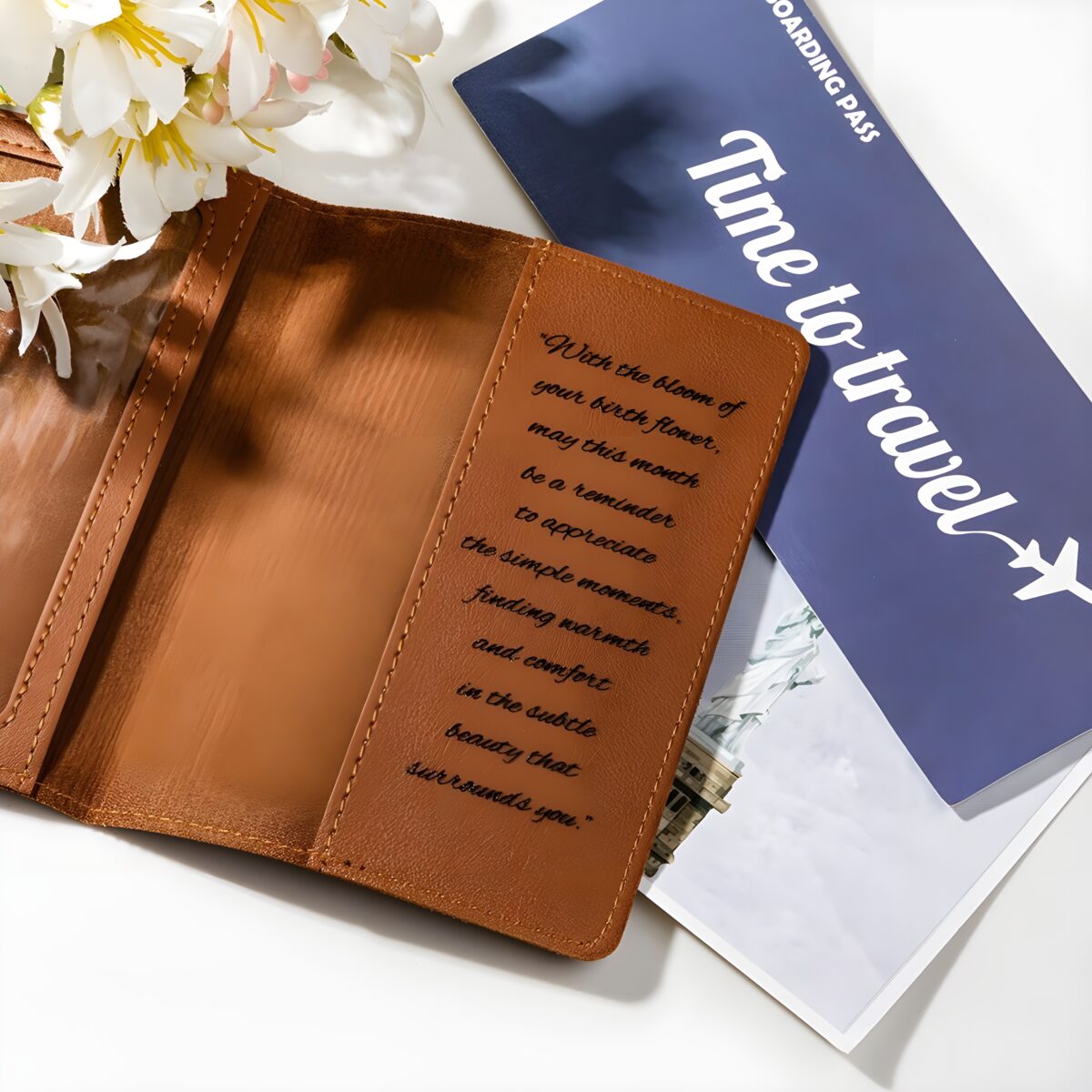 Carry Your Story in Bloom – Birth Flower Leather Passport Holder & Luggage Tag – For the Wanderlust Woman