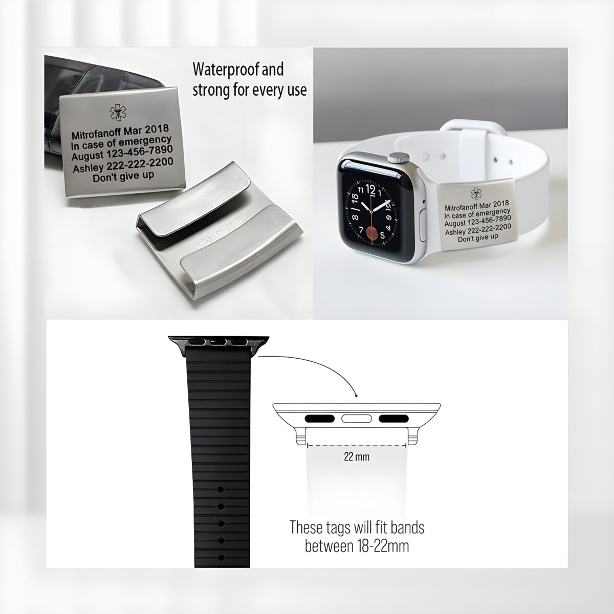 🛡️ Keep essential medical information close with this medical alert ID tag for smartwatch bands, designed for comfort and safety during active moments.