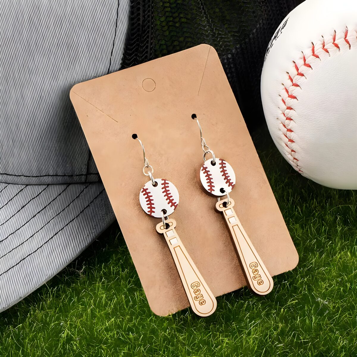 ⚾ Celebrate your love for baseball with these custom wooden baseball bat earrings, perfect for sports moms and fans alike.