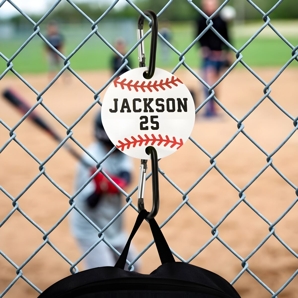 ⚾ Keep your sports gear uniquely yours with this custom round acrylic bag tag, engraved with your name for easy recognition and lasting style.