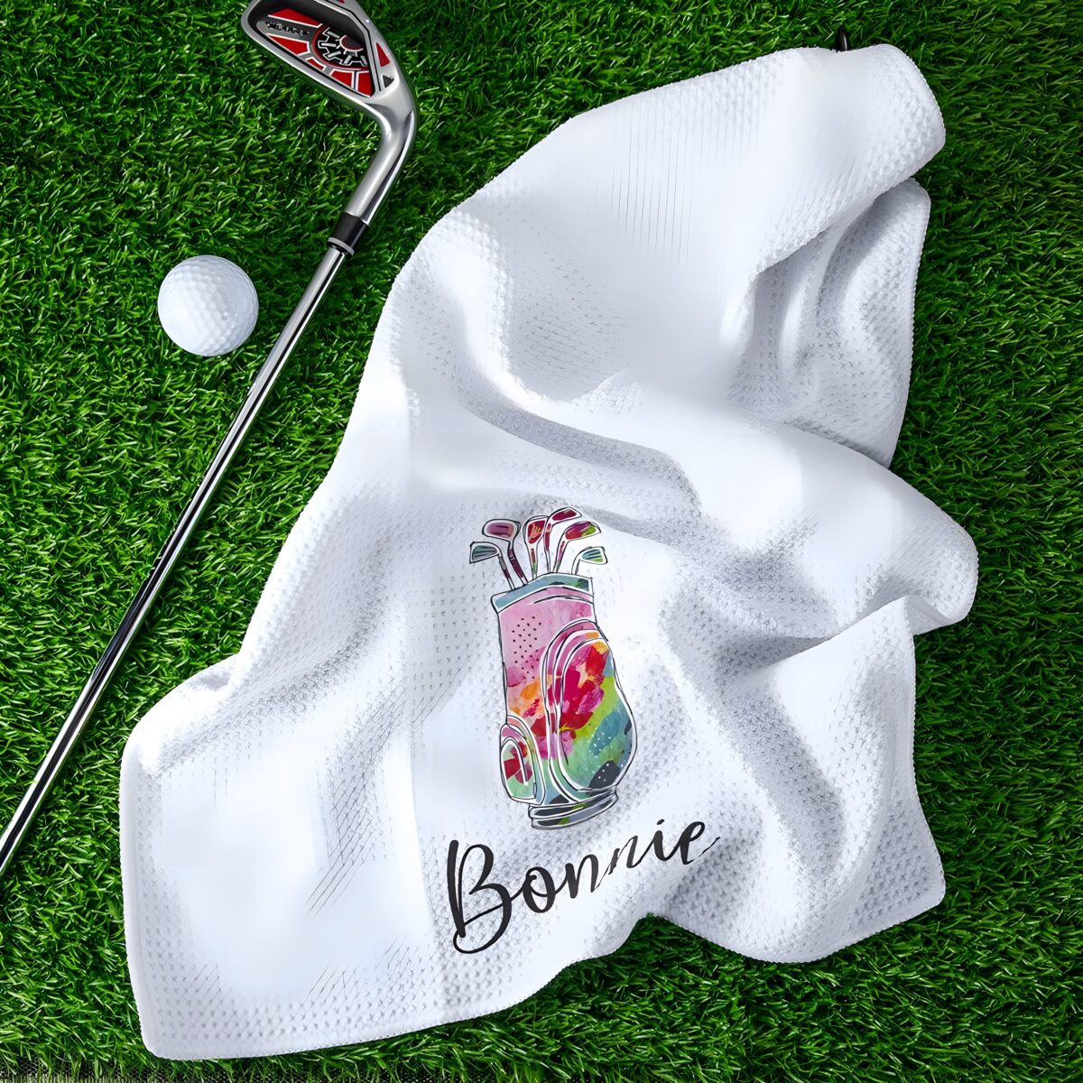 Embrace Every Swing – Custom Colorful Golf Club Towel with Clip – For the Woman Who Loves Golf