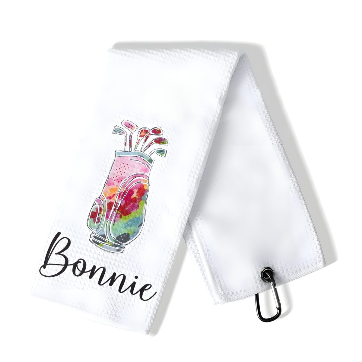 ⛳ Keep your clubs pristine with this custom colorful golf club towel featuring a handy hanging clip—made especially for female golfers.