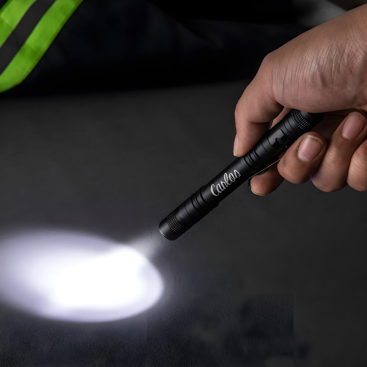 Designed especially for those who serve and protect, this custom engraved LED flashlight is more than a tool—it’s a symbol of dedication and reliability. Personalized with a name of your choice, it becomes a unique companion that stands ready through every shift and every challenge.