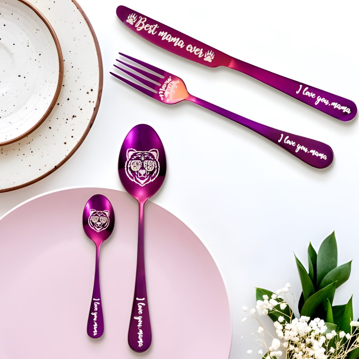 🐻 Celebrate mom’s love with this heartfelt Mama Bear cutlery set, personalized to make every meal special.