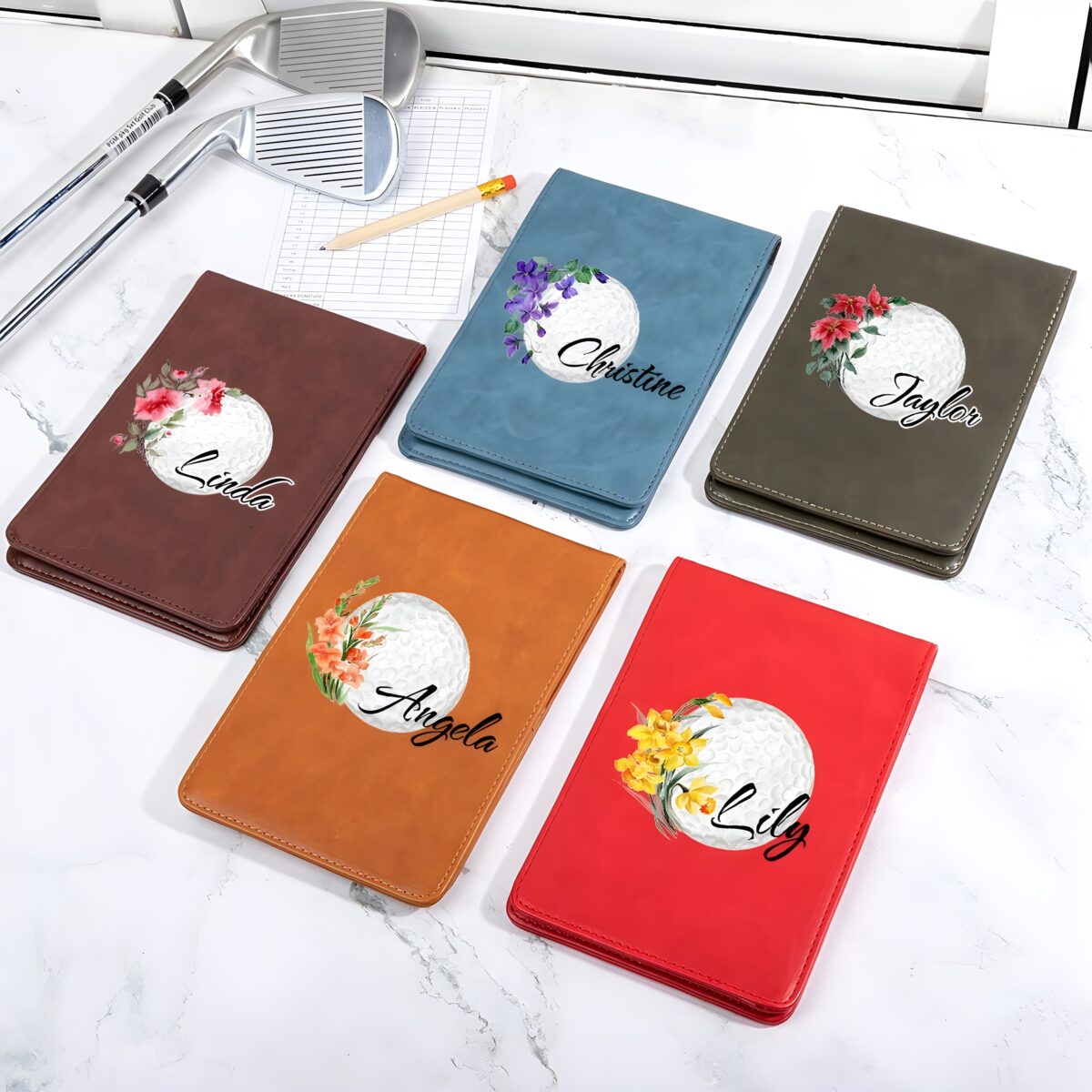 🌷 Embrace the charm of your birth month with this personalized birth flower golf scorecard holder, a stylish and durable leather accessory designed for women who love the game.