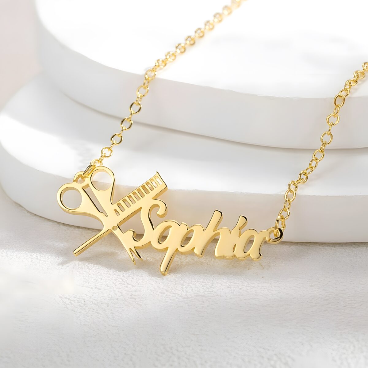 Celebrate Your Craft – Custom Hairdresser Name Necklace with Scissors & Comb – For Hairstylists and Barbers Who Shine