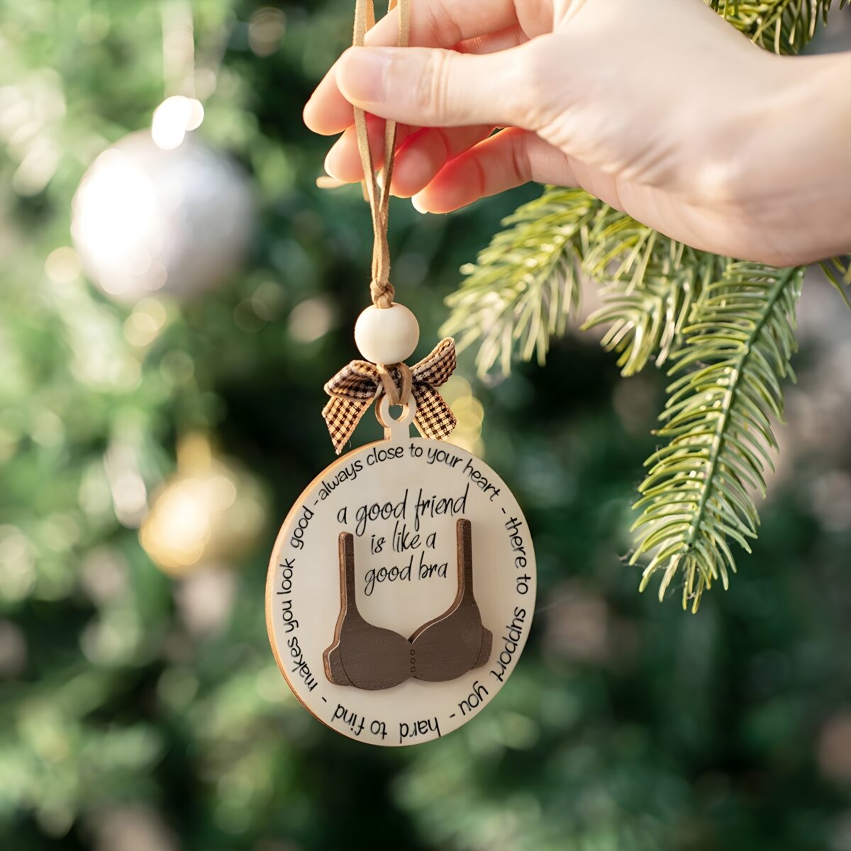 🎄 Capture the joy of friendship with this custom name bra ornament, a fun and meaningful keepsake for Christmas or birthdays.