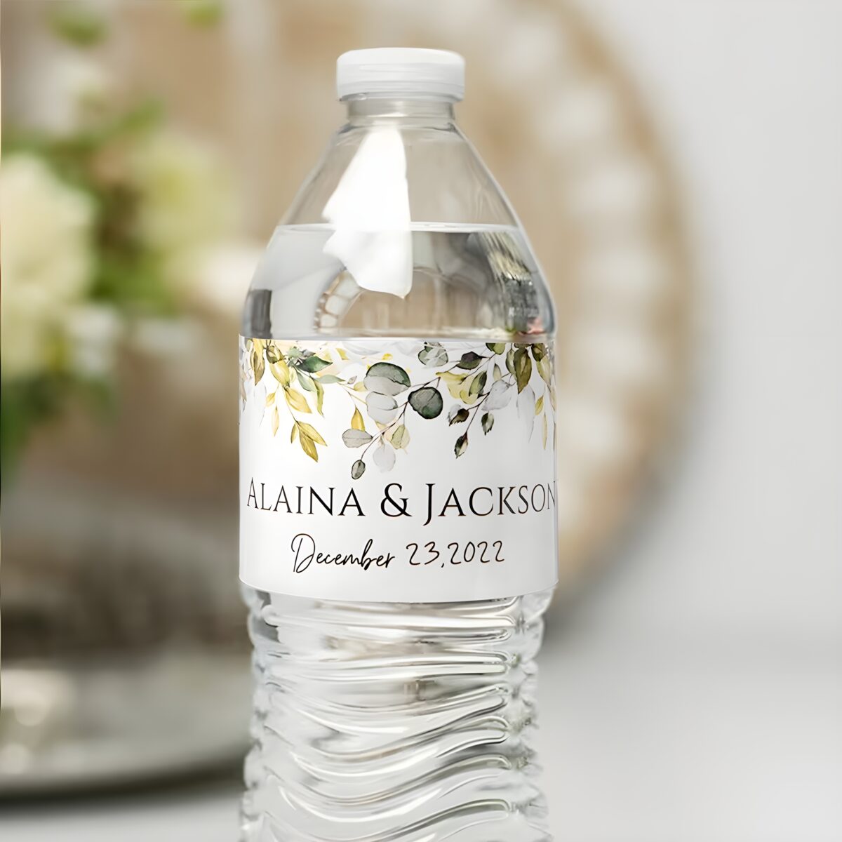 Celebrate Your Love Story – Custom Greenery Wedding Water Bottle Labels – For Cherished Wedding & Bridal Moments