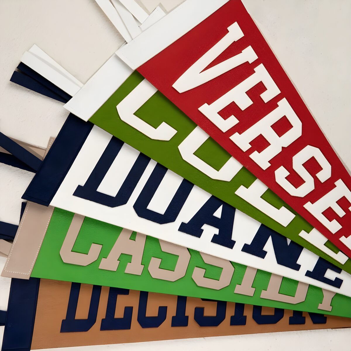 Designed for athletes, coaches, teachers, and proud supporters alike, this custom name pennant flag is more than just a decoration—it’s a vibrant symbol of passion and pride. Whether displayed in an office, dorm, classroom, or at a sporting event, it carries your unique message with bold clarity and timeless style.