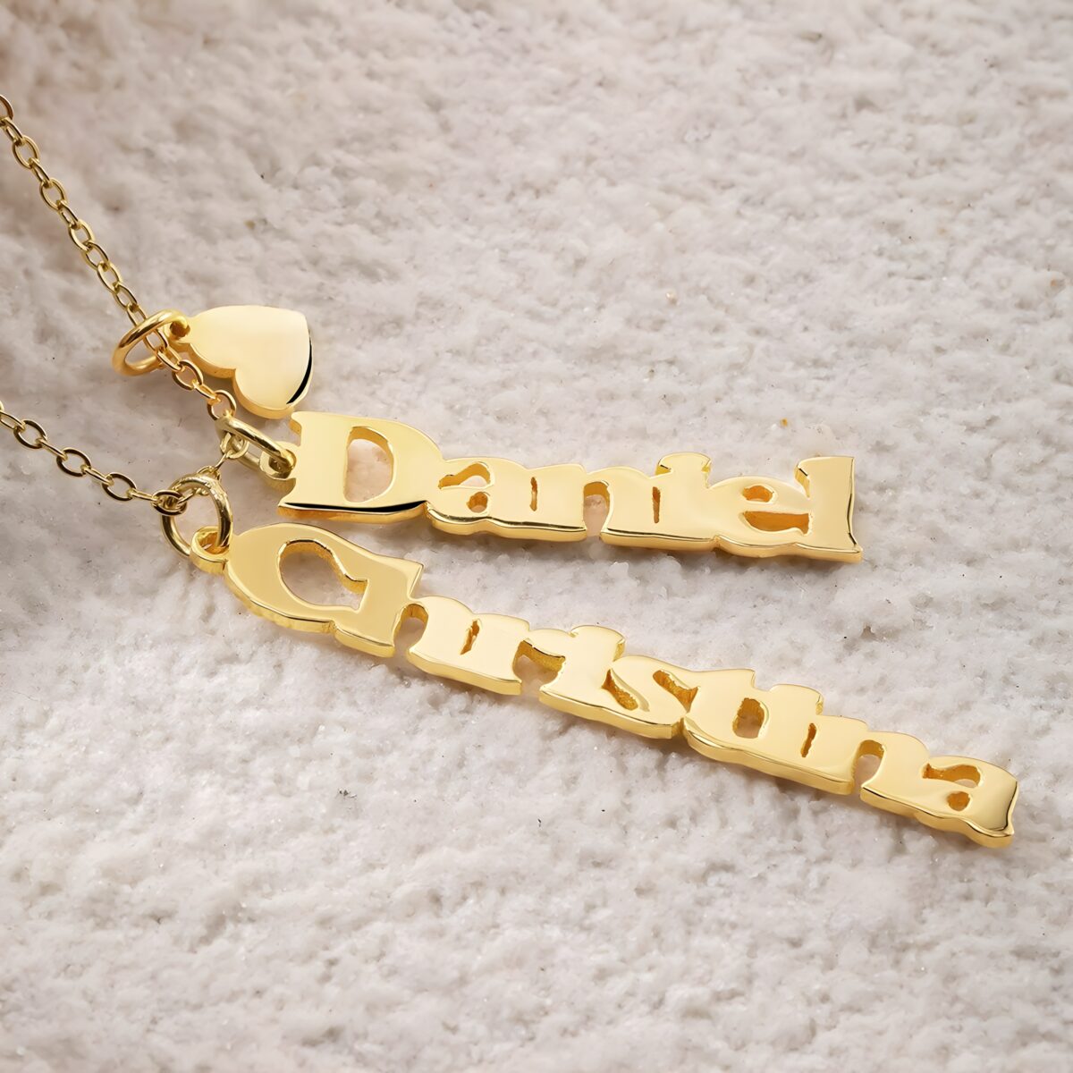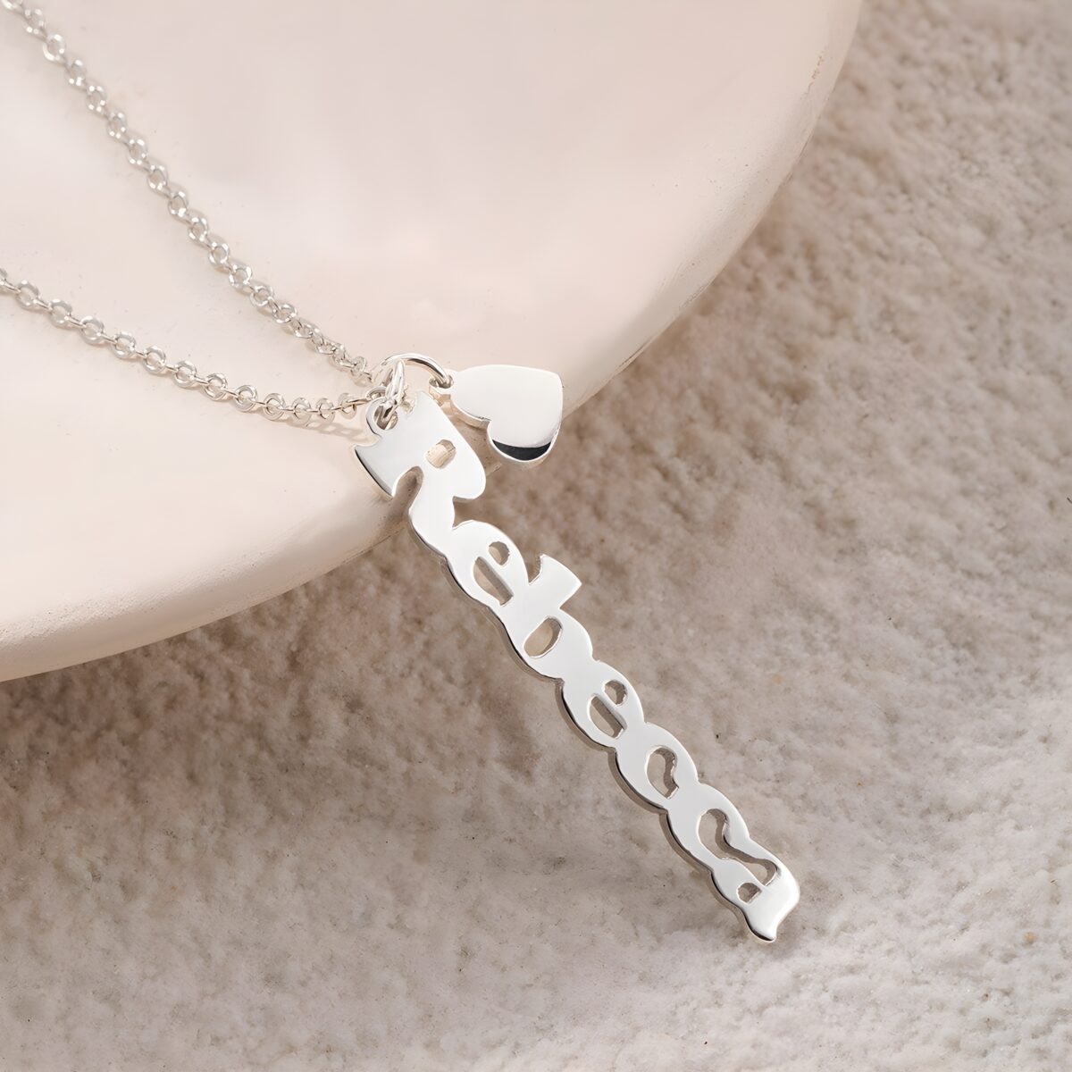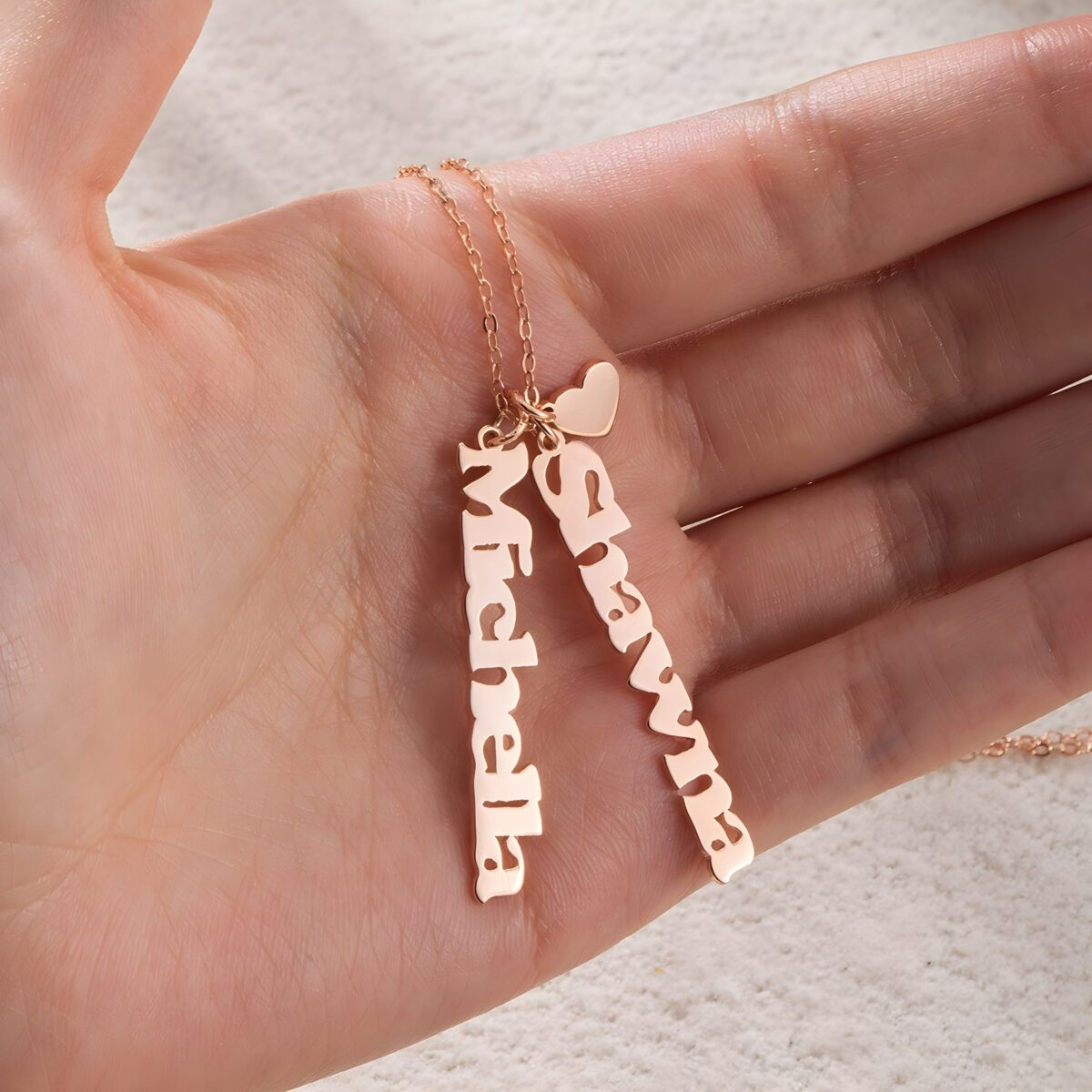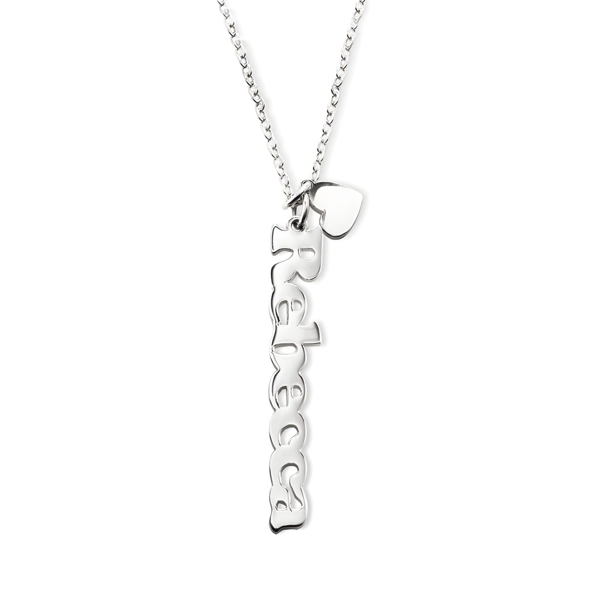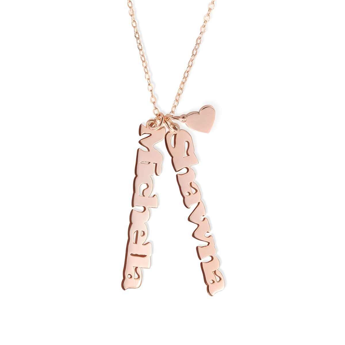 💞 Celebrate your unique story with this vertical name and heart charm necklace, a meaningful keepsake for the women you cherish most.