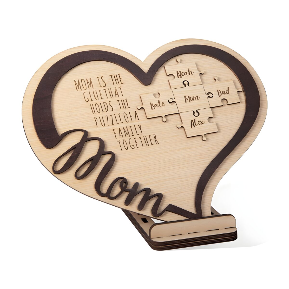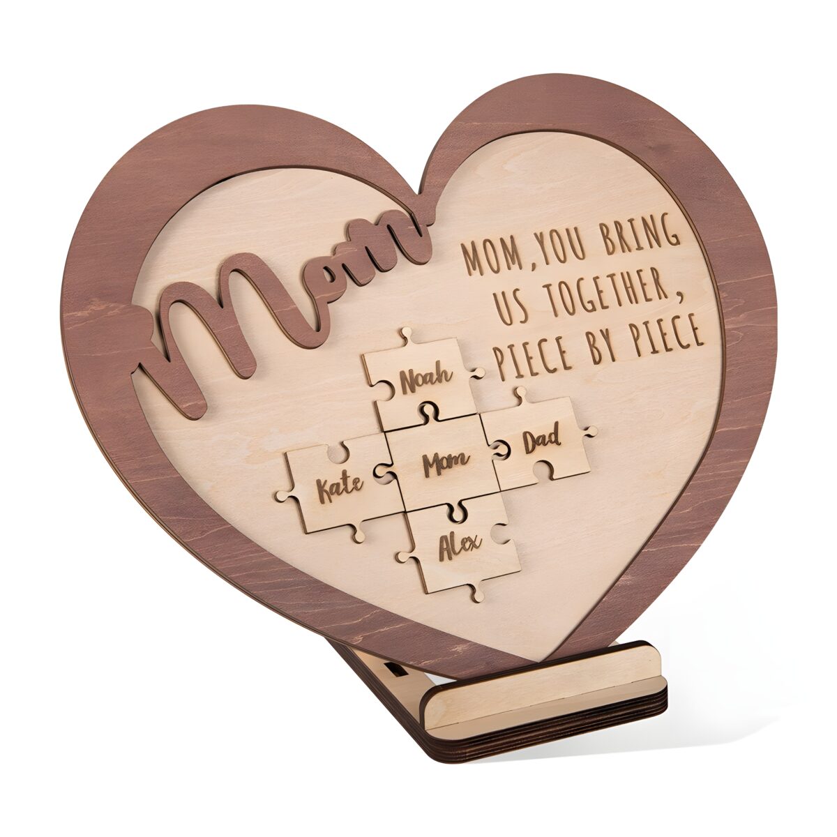 ❤️ Celebrate family bonds with this heart-shaped wooden name puzzle, a touching keepsake for mom, grandma, or wife that beautifully displays up to five family names.