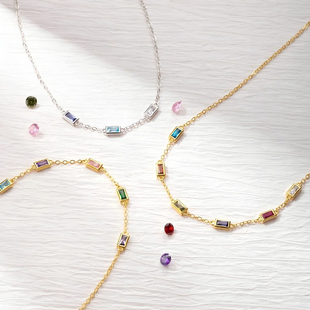 This delicate necklace is a beautiful tribute to the special people in your life. Designed to hold from one to six shimmering square birthstones, it captures the unique story of your family’s love and connection. Whether for a mother, grandmother, or cherished woman, this piece speaks volumes of affection and remembrance.