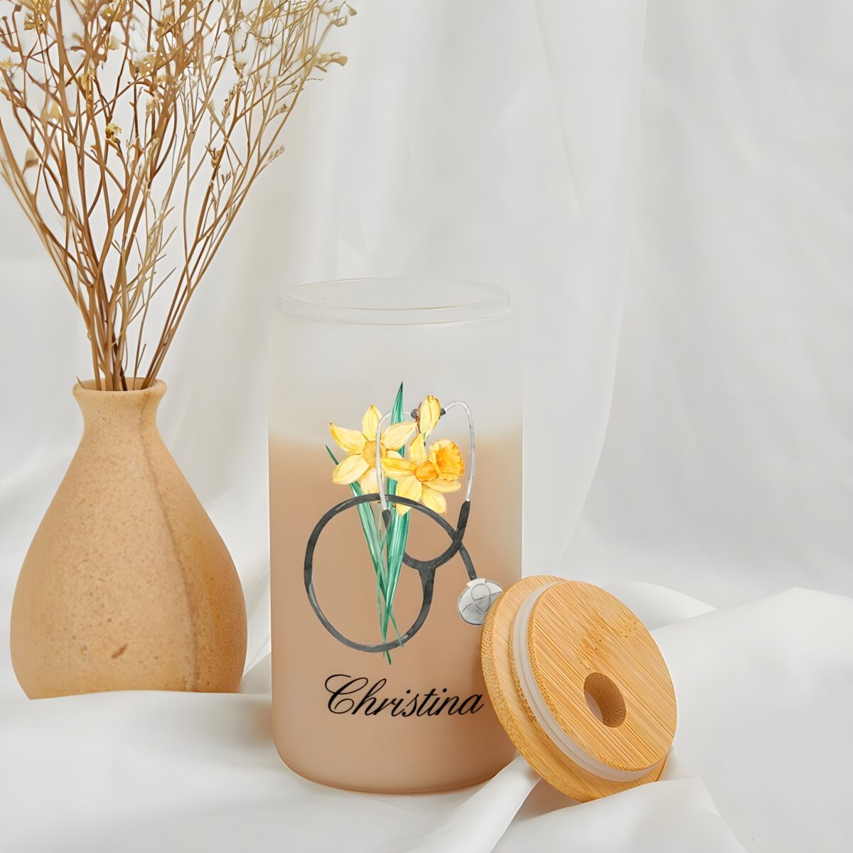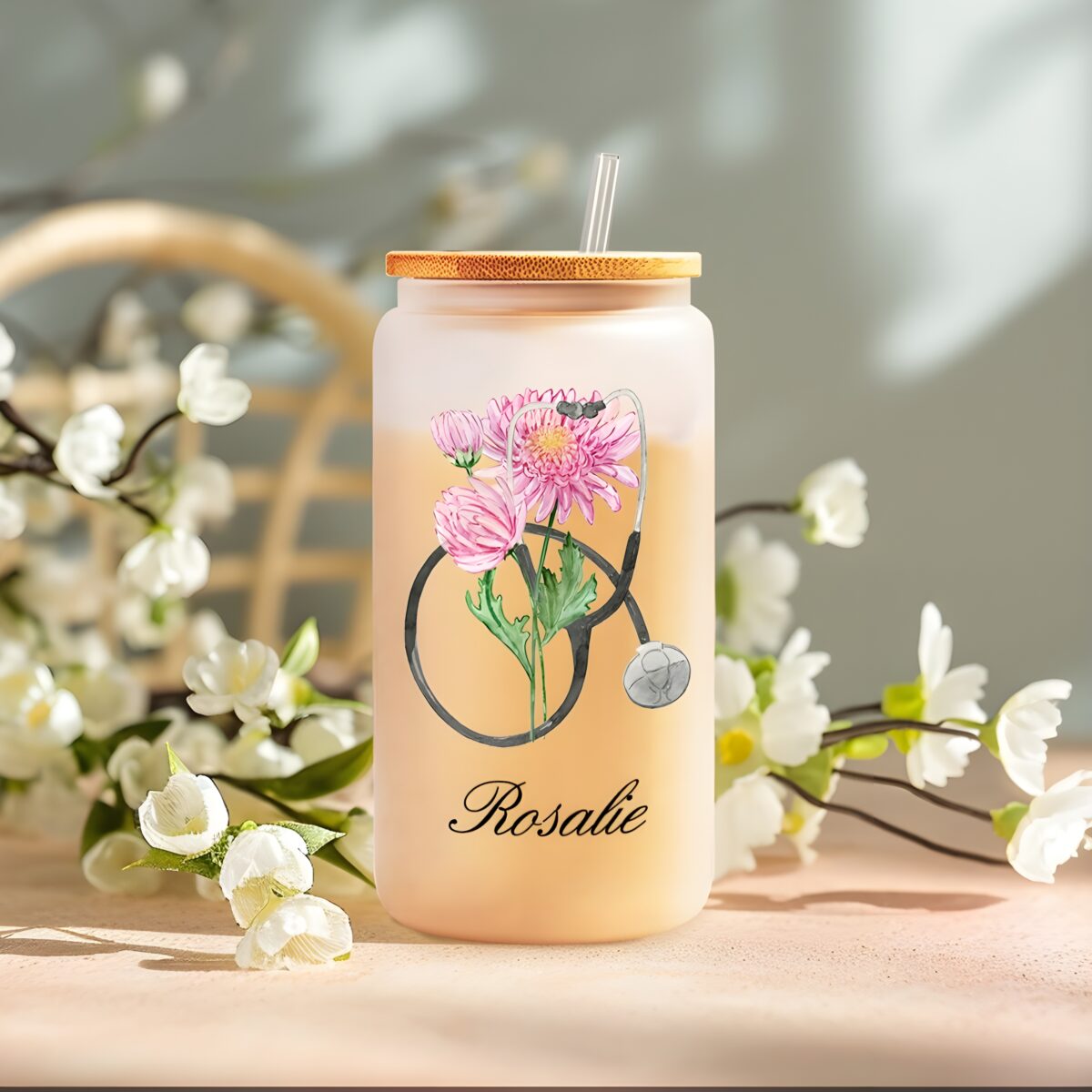 Bring beauty and meaning to your hydration routine with this Personalized Nurse Tumbler. Crafted from frosted glass and adorned with your birth flower and name, it captures the perfect blend of elegance and purpose. The stethoscope design adds a heartfelt nod to the nursing and medical profession — reminding you to stay hydrated and inspired through every busy day.