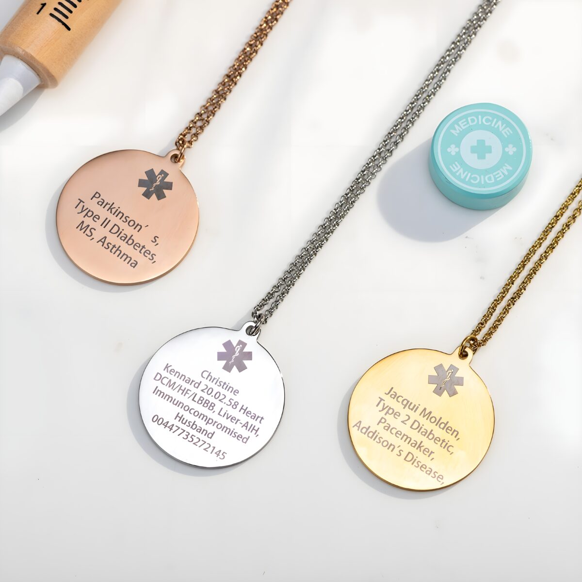 • 💖 Personalized Touch – Each necklace is engraved with your essential medical information, ensuring help is informed when every second counts.