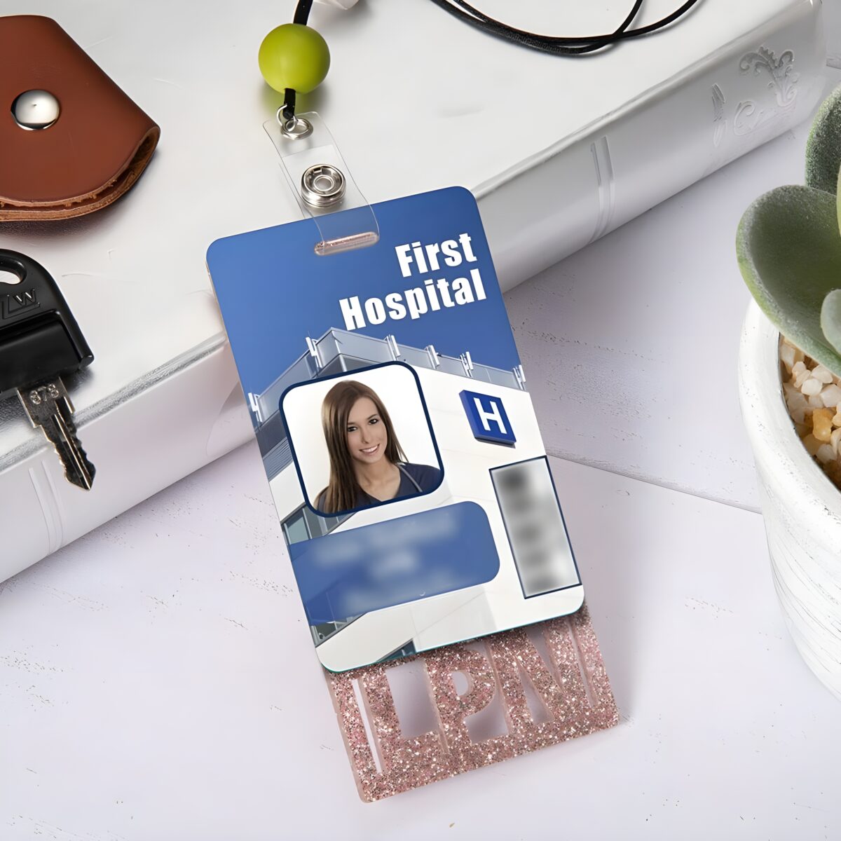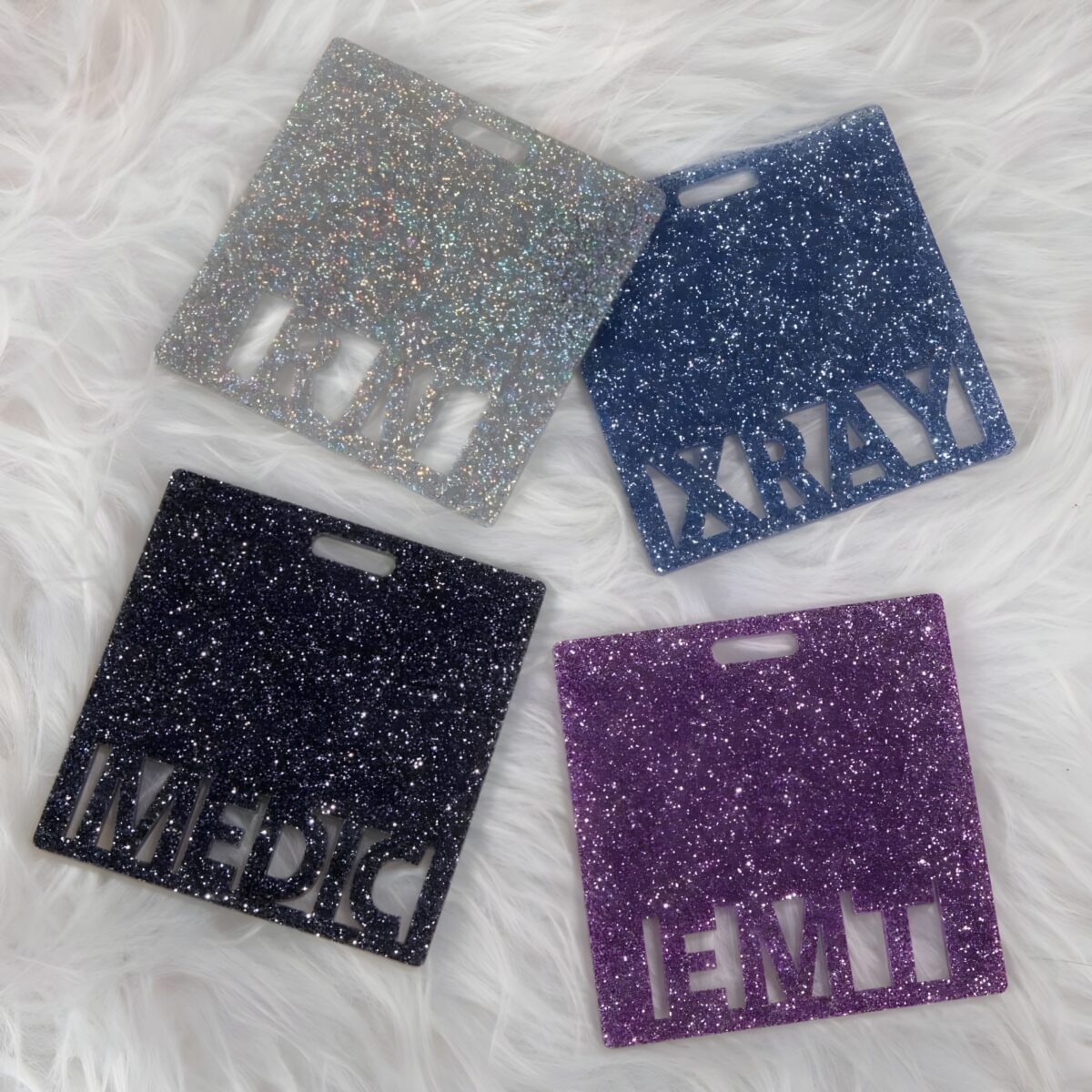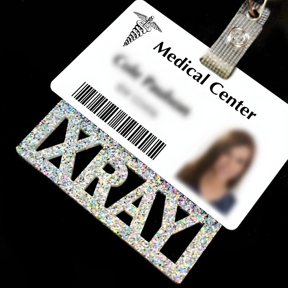 ✨ Brighten your workday with this custom glitter badge buddy, designed to showcase your professional pride and add sparkle to your ID.