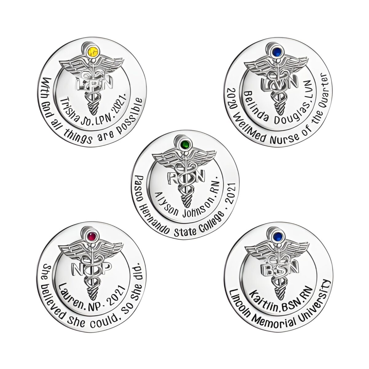🎉 Custom nursing pin designed to honor the special moment of the pinning ceremony, personalized with initials and birthstone for a meaningful touch.