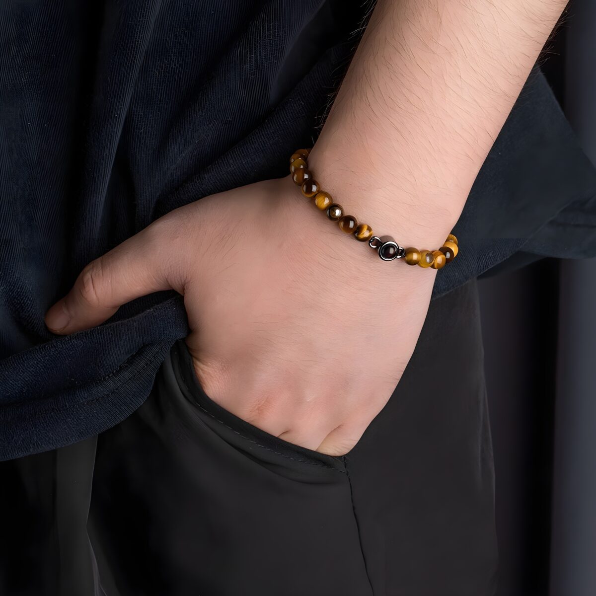 Carry Your Memories Close – Photo Projection Tiger Eye Bracelet for Him – A Token of Love and Connection