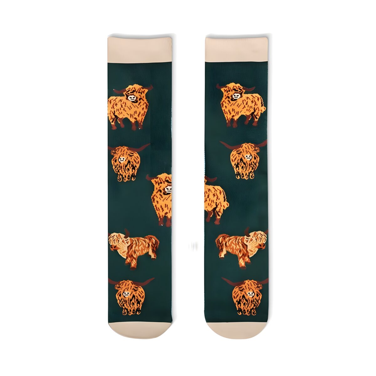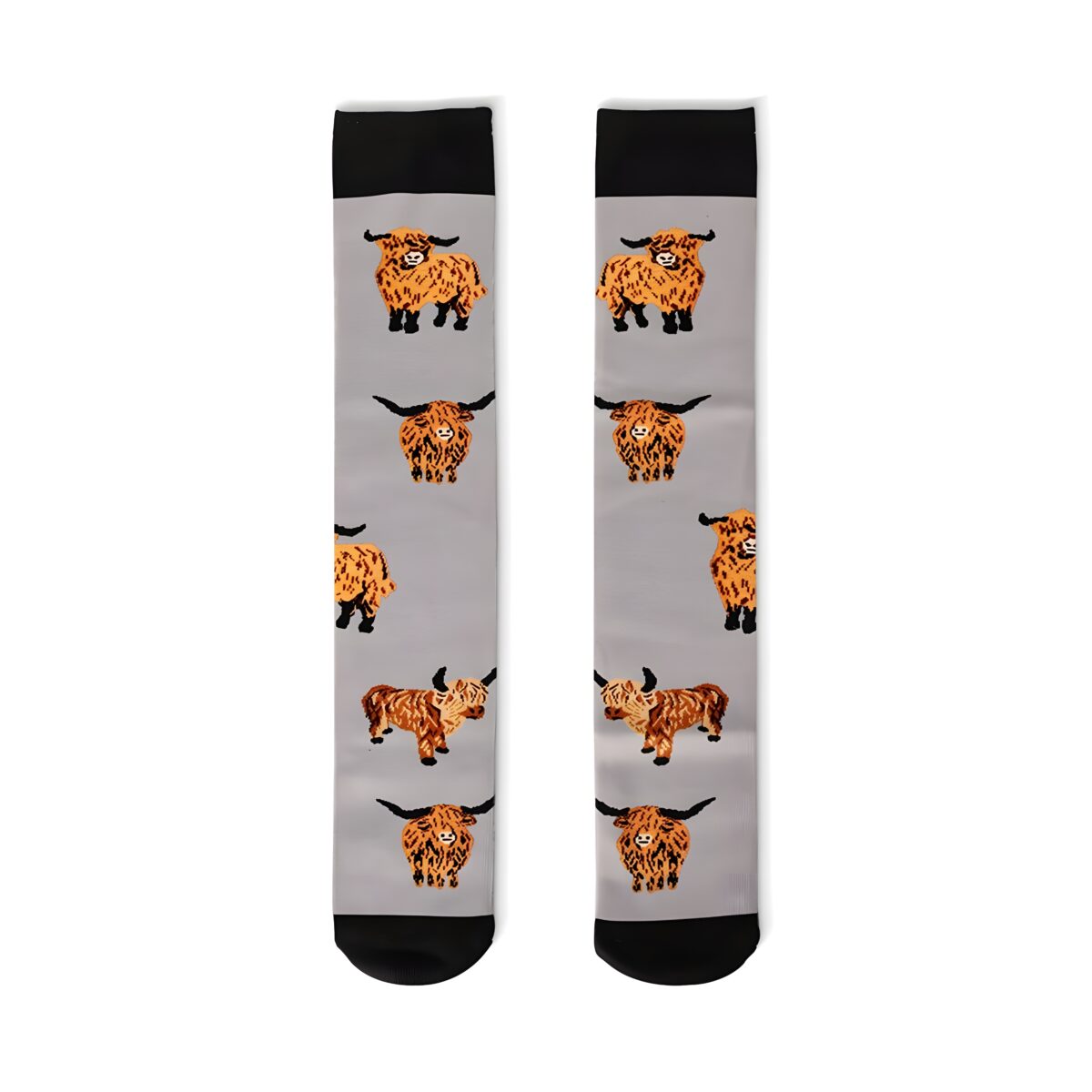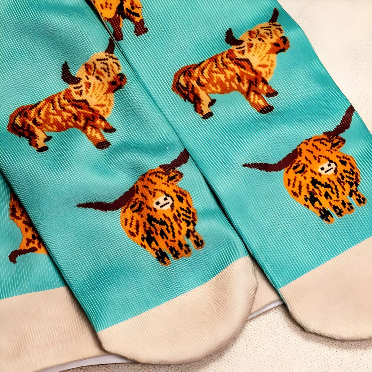 Embrace Scottish Charm – Cozy Highland Cow Socks – For Lovers of Whimsy and Warmth