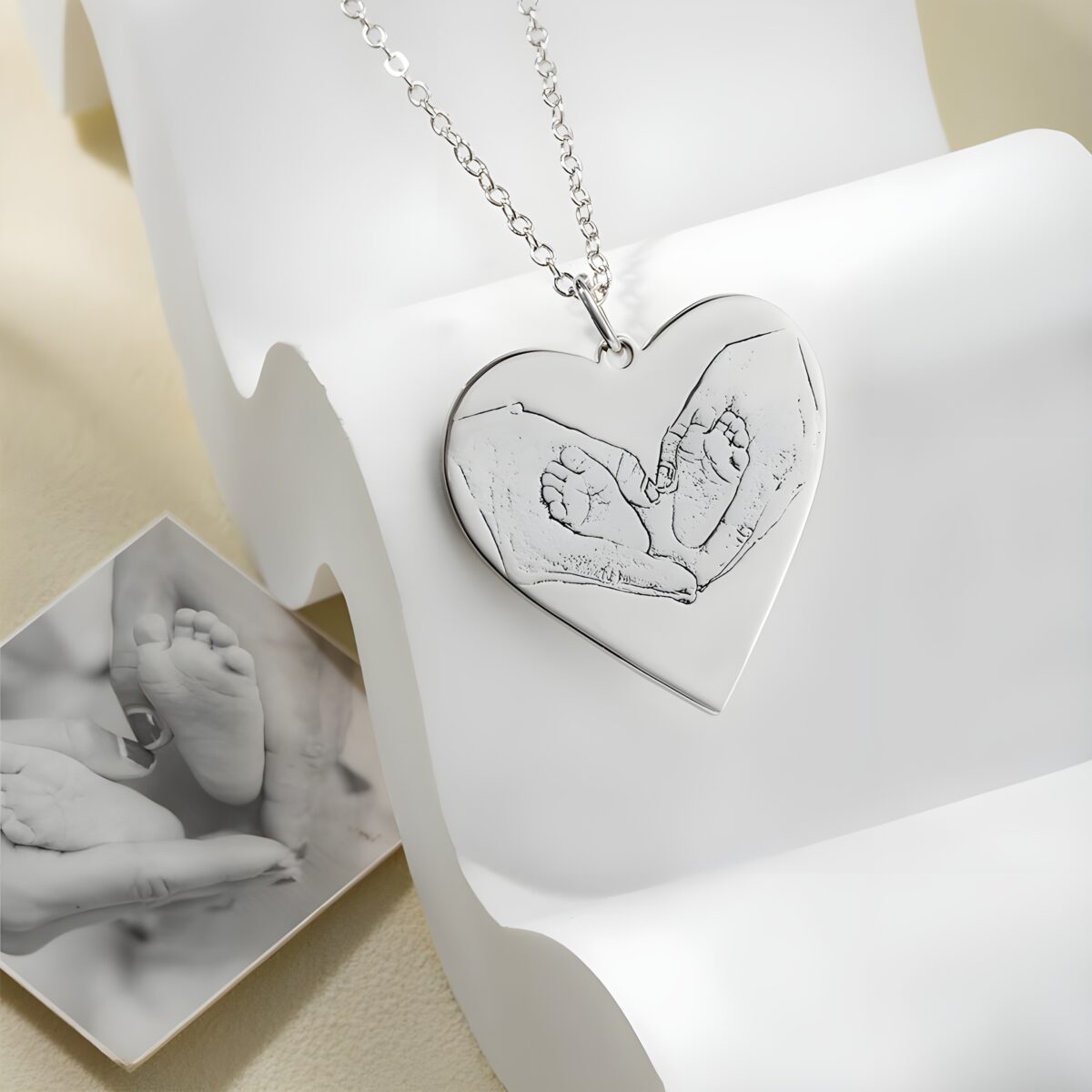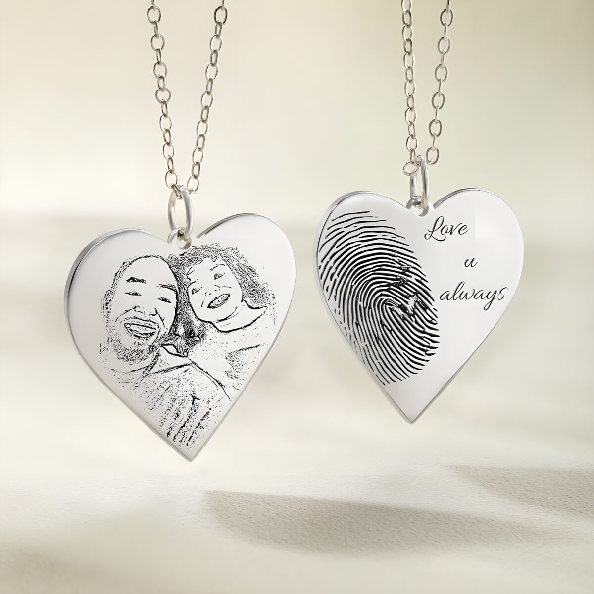 Carry Their Touch Close – Heart-Shaped Photo & Fingerprint Necklace – A Timeless Treasure for Loved Ones