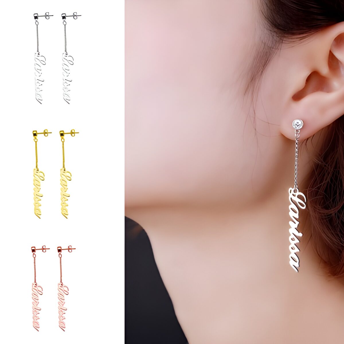 Embrace Your Story – Elegant Name Chain Drop Earrings – A Cherished Keepsake for Loved Ones