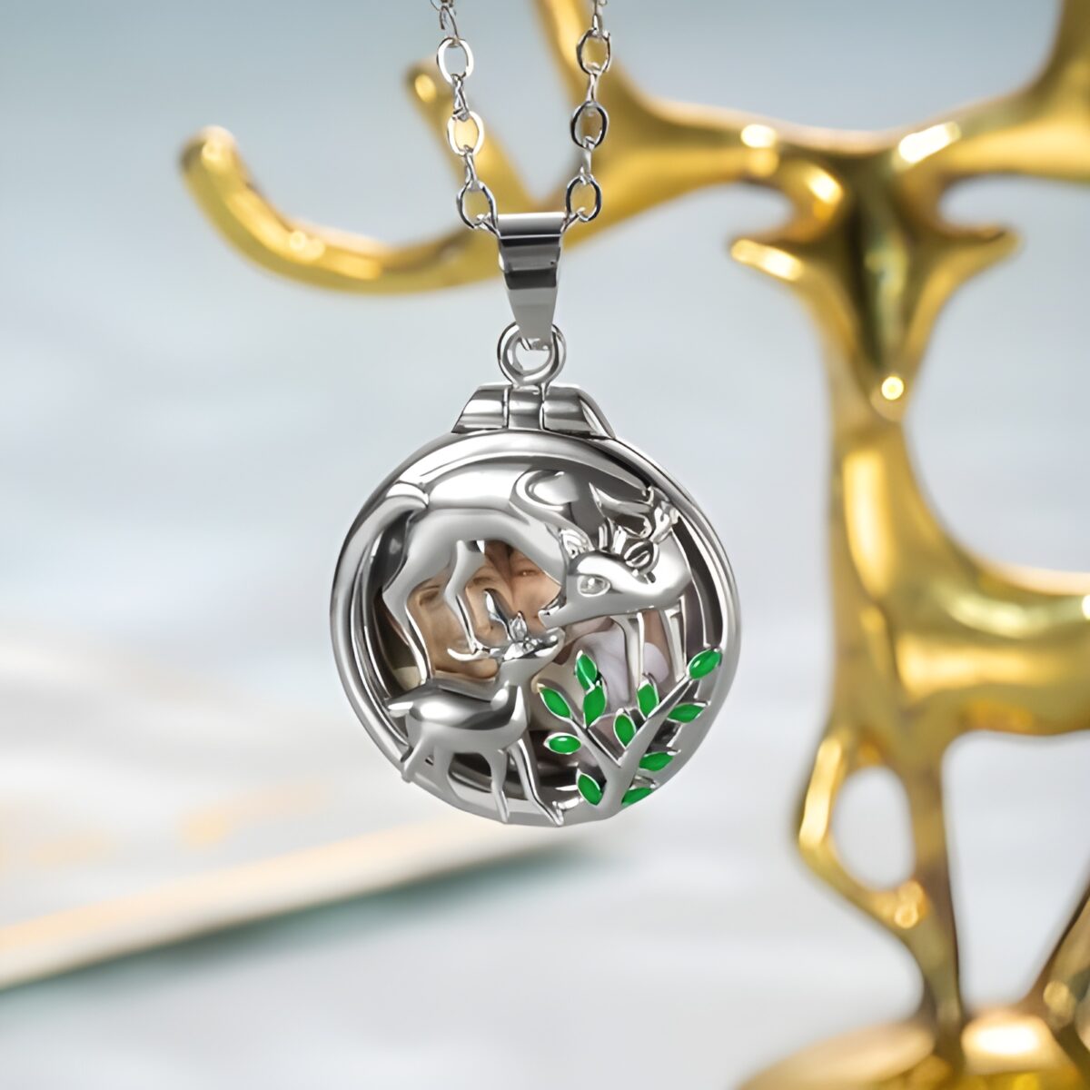 This elk necklace transforms a simple piece of jewelry into a heartfelt story you can wear. Its ability to open and close allows you to keep a special photo safely within, making every glance a reminder of love and connection. Thoughtfully crafted the Eolante Way, it is a timeless treasure for yourself or those you cherish most.