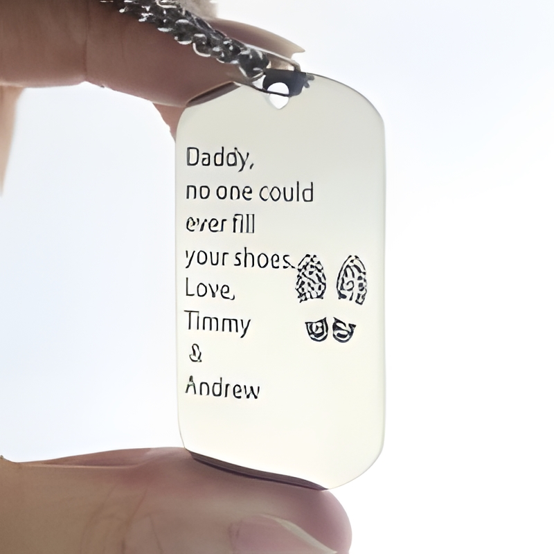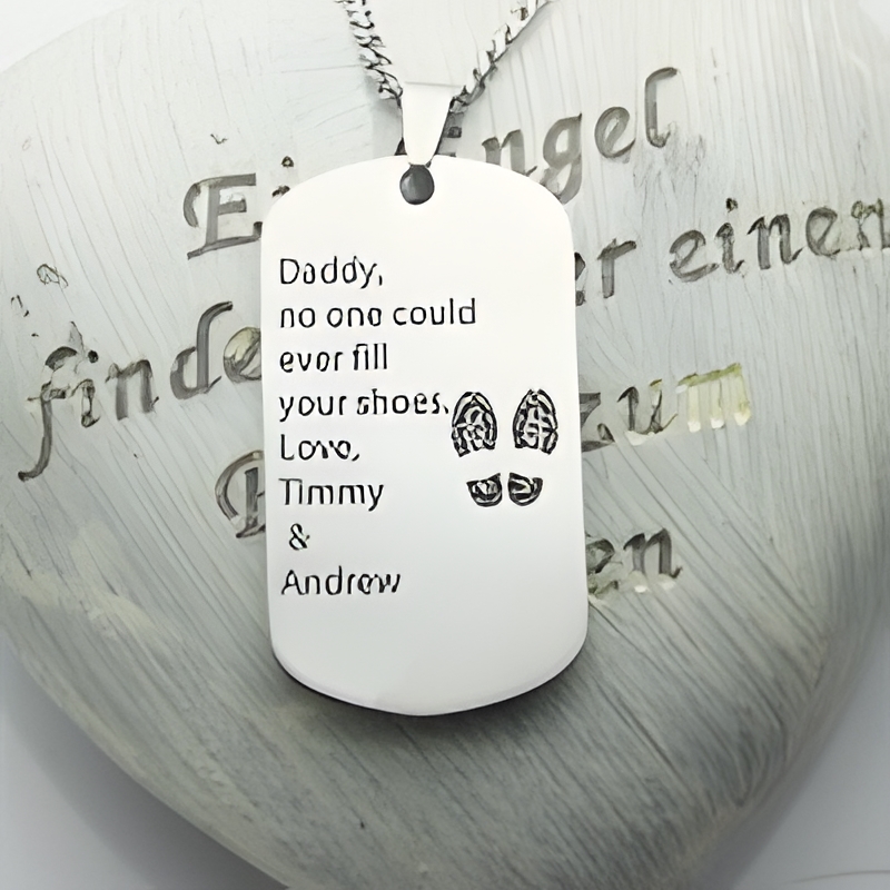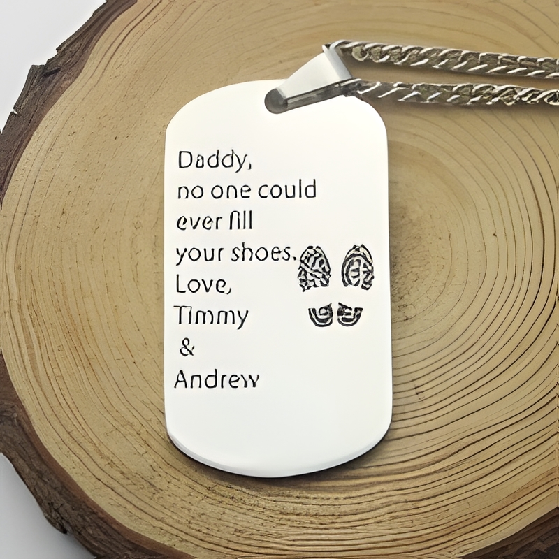 🎖️ Embrace the strength of his name with this custom dog tag necklace in titanium steel, designed to honor and celebrate Dad.
