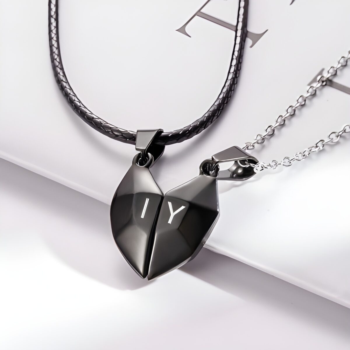 ❤️ Magnetic heart-shaped necklace set designed for couples to share an intimate and lasting bond, customizable with meaningful letters.