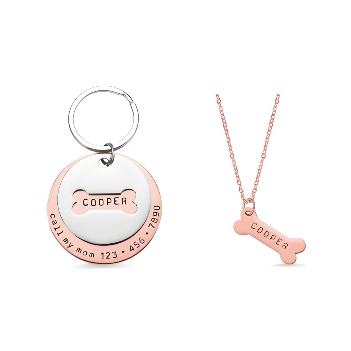 Celebrate the unique connection you share with your beloved pet through this thoughtfully designed dog tag and bone necklace set. More than just an accessory, it carries your pet’s identity and your heartfelt message, symbolizing the unspoken understanding between you and your furry friend.