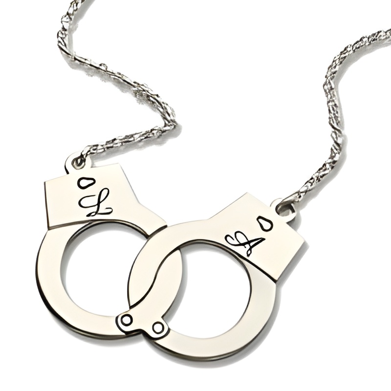 This sterling silver handcuff necklace is a meaningful symbol designed for couples who wish to express their unbreakable bond. Crafted to carry two initials delicately engraved on each handcuff, it captures the essence of intimacy and shared stories. Whether given for Valentine’s Day, a special anniversary, or simply to honor your love, this necklace is a heartfelt reminder of togetherness and passion.