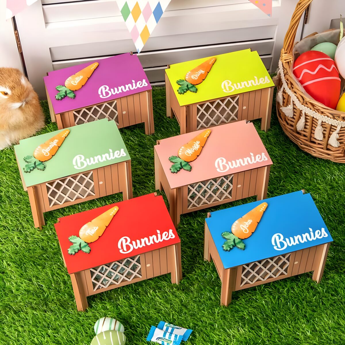Make Easter hunts and decorations even more delightful with this Custom Wooden Bunny Hutch. Featuring a cheerful carrot accent and a personalized name, it’s a fun way to hold candies, chocolates, or small toys — or simply brighten up a spring table. 🎉🥕