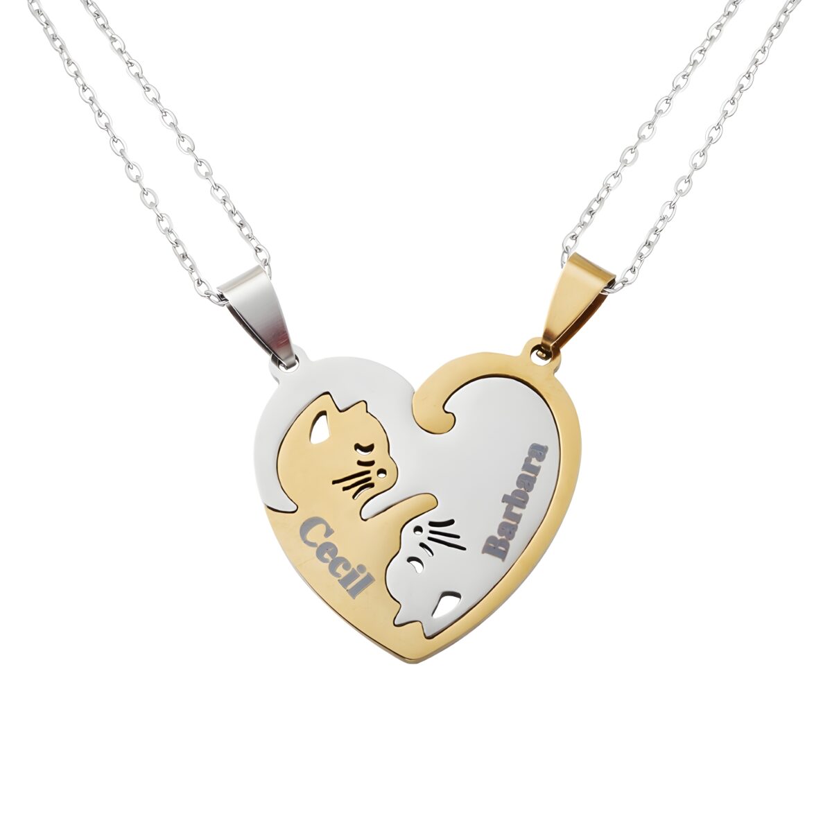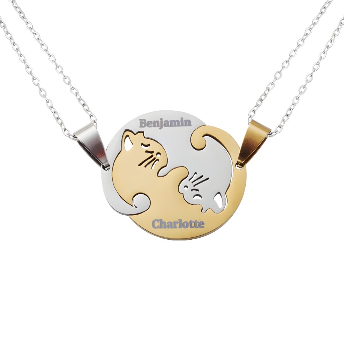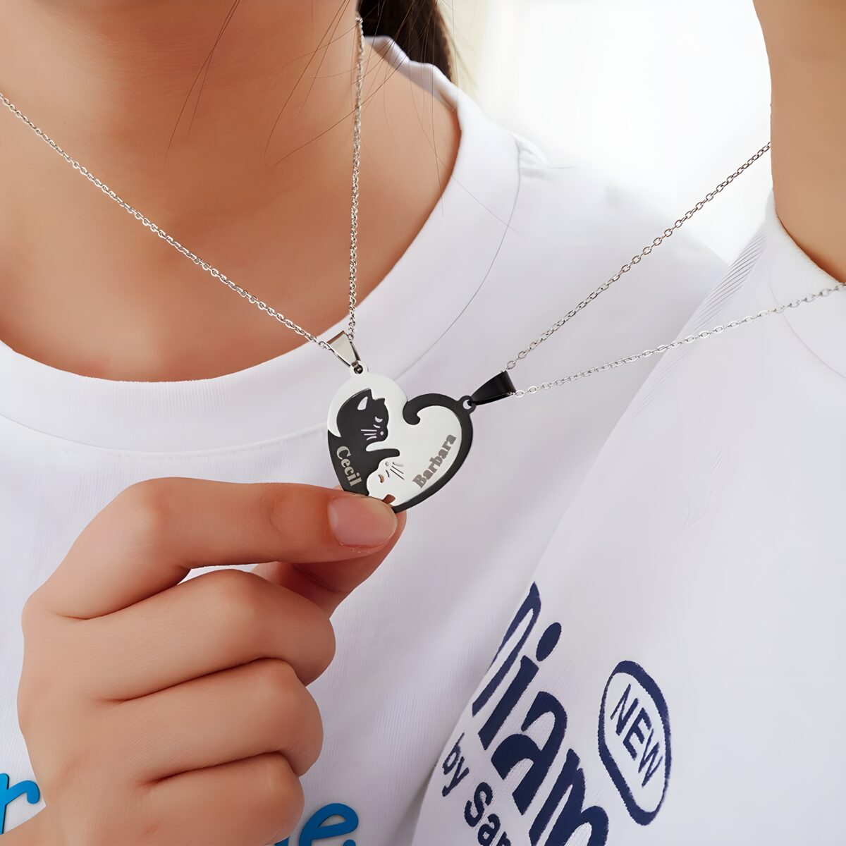 🐱 Capture your special bond with this custom cat necklace set, crafted for best friends and sisters who share a love for charming, meaningful jewelry.