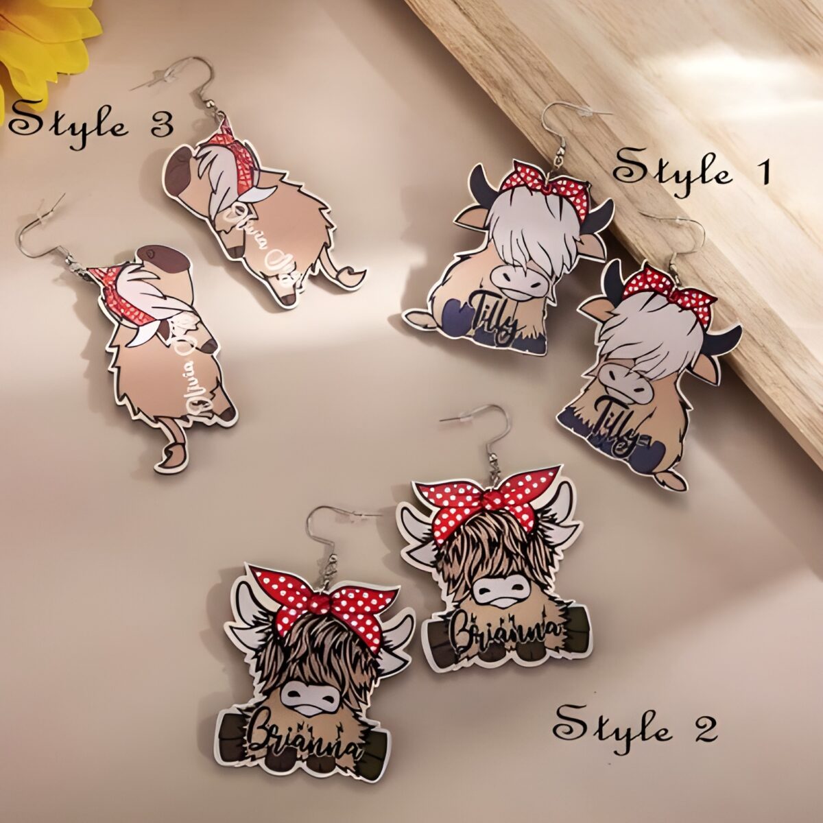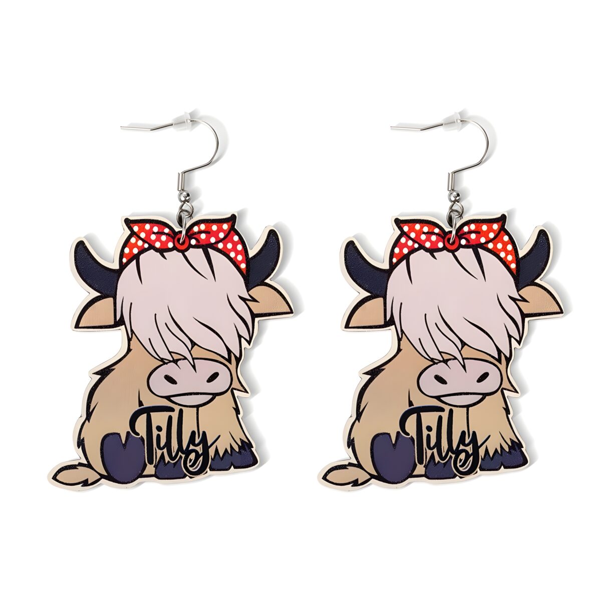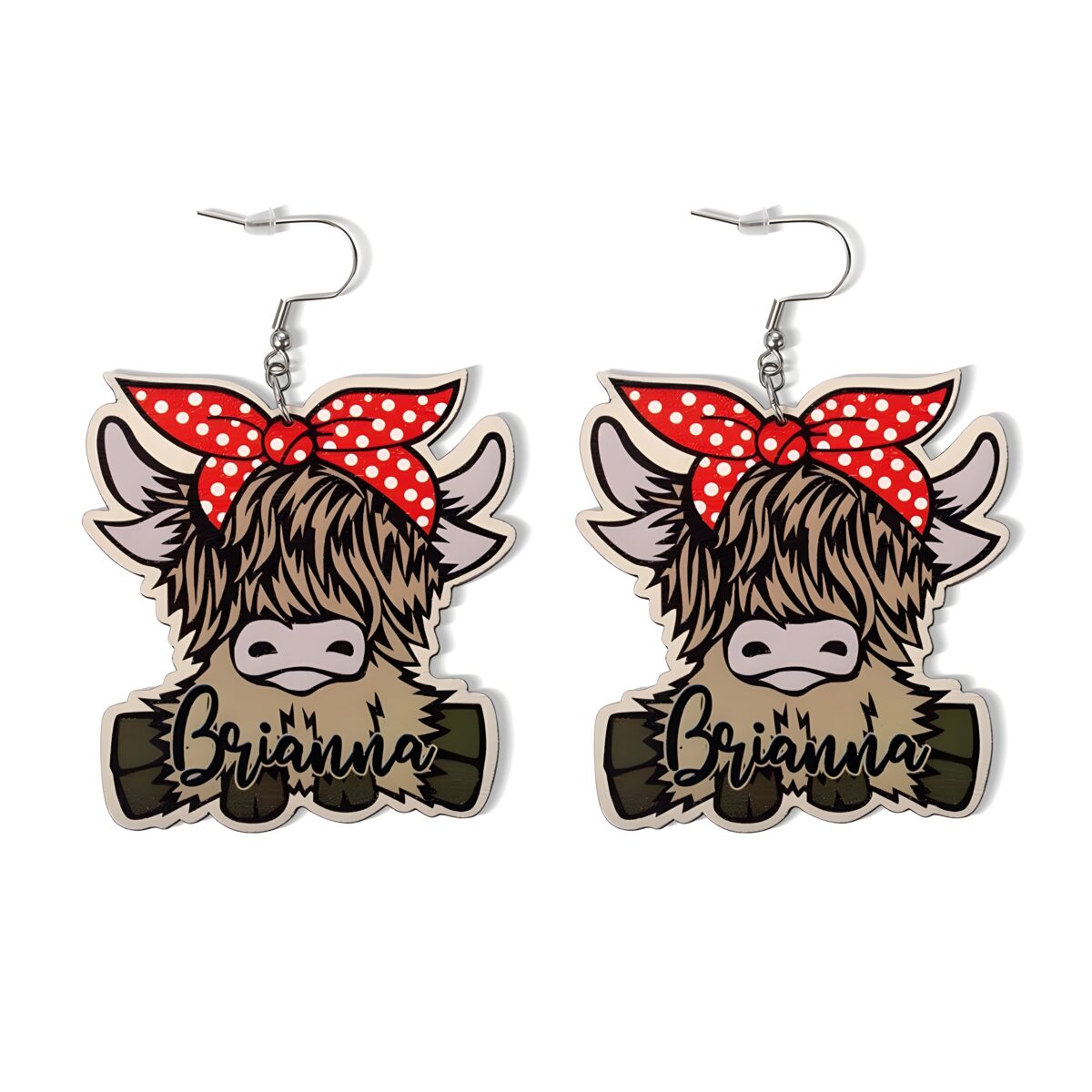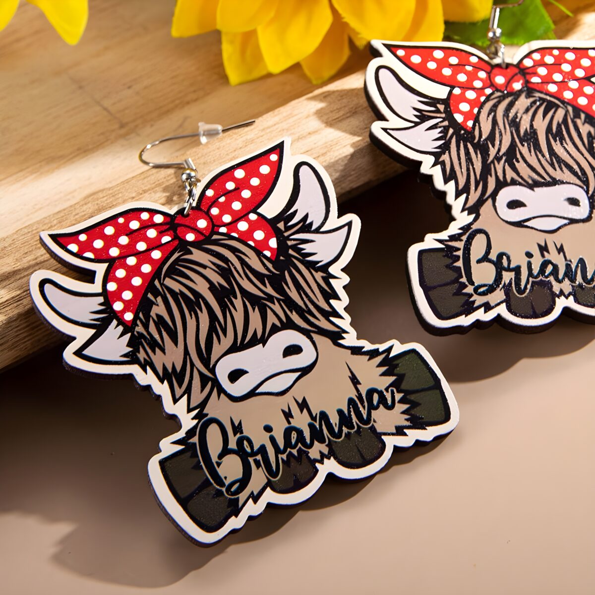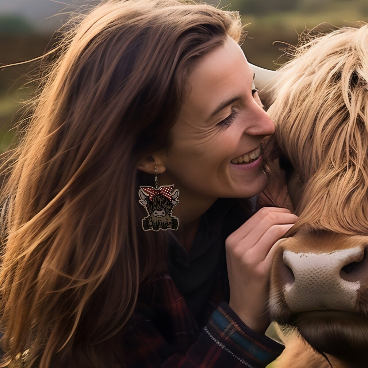 Embrace Highland Charm – Custom Wooden Cow Earrings – For Animal Lovers and Free Spirits
